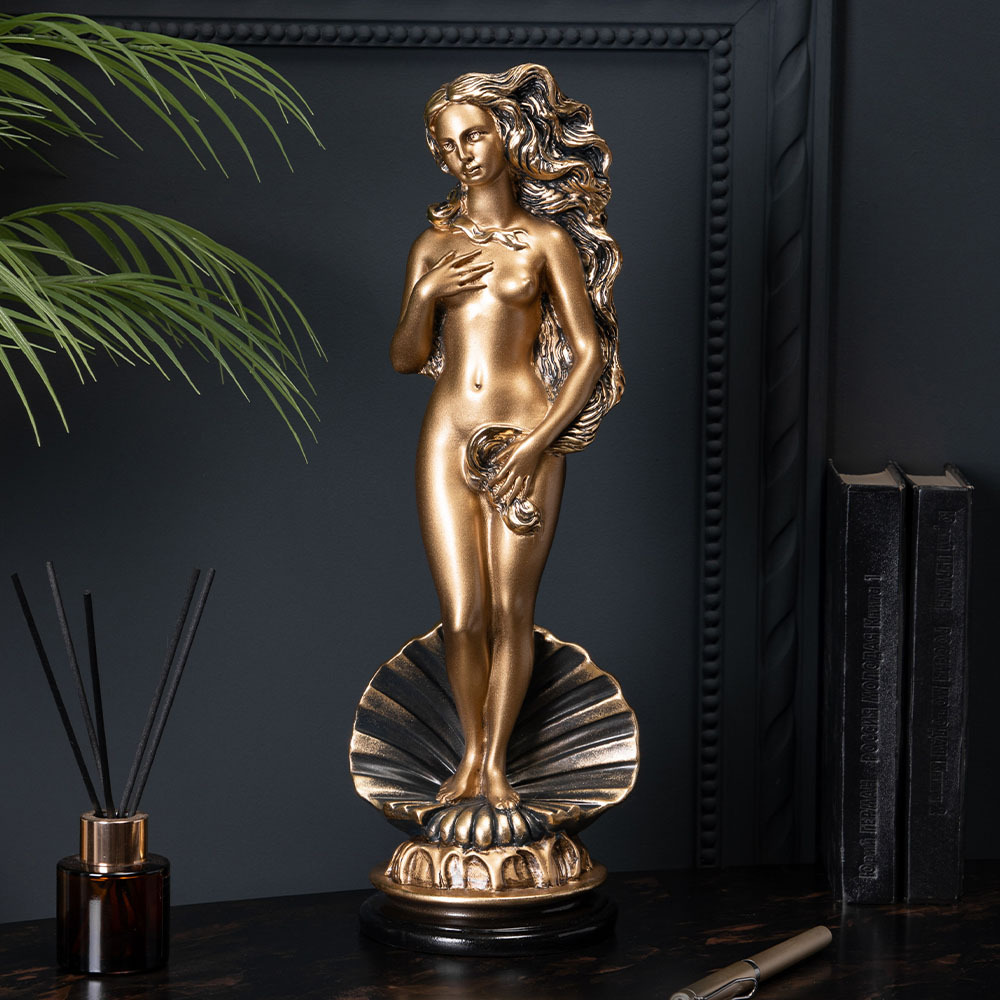 Скульптура «Рождение Венеры» — символ красоты и гармонии в вашем интерьере Изящная скульптура «Рождение Венеры» — это современная интерпретация вечного образа, олицетворяющего женственность, красоту и чистую энергетику. Фигура выполнена с тонкой детализацией: плавные линии, утончённые пропорции и выразительная пластика создают ощущение лёгкости и совершенства. Такой арт-объект станет стильным украшением гостиной, спальни, кабинета или творческого пространства. Скульптура гармонично вписывается в интерьер в стилях классика, неоклассика, современный, арт-деко и минимализм, наполняя пространство эстетикой и визуальной лёгкостью. Кому подойдёт скульптура «Рождение Венеры»:— ценителям художественного декора;— тем, кто хочет добавить в дом символ гармонии и красоты;— коллекционерам авторских фигур;— в качестве премиального подарка на особый случай. Преимущества скульптуры:— высокое качество исполнения;— детальная ручная работа;— выразительный декоративный акцент;— долговечность и стойкость материалов. Скульптура «Рождение Венеры» станет центральным элементом интерьера и подчеркнёт утончённый вкус владельца. Это эстетика, которая не выходит из моды — классика, оживающая в современном пространстве.