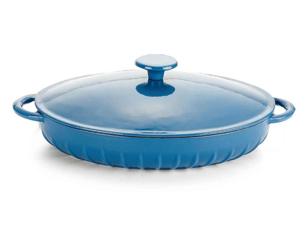 Овальный сотейник Gipfel 1346. Размер 31х25х5,5 см. Сотейник имеет объем 2,4 л. Сделан из чугуна с эмалированным покрытием. В комплекте крышка.