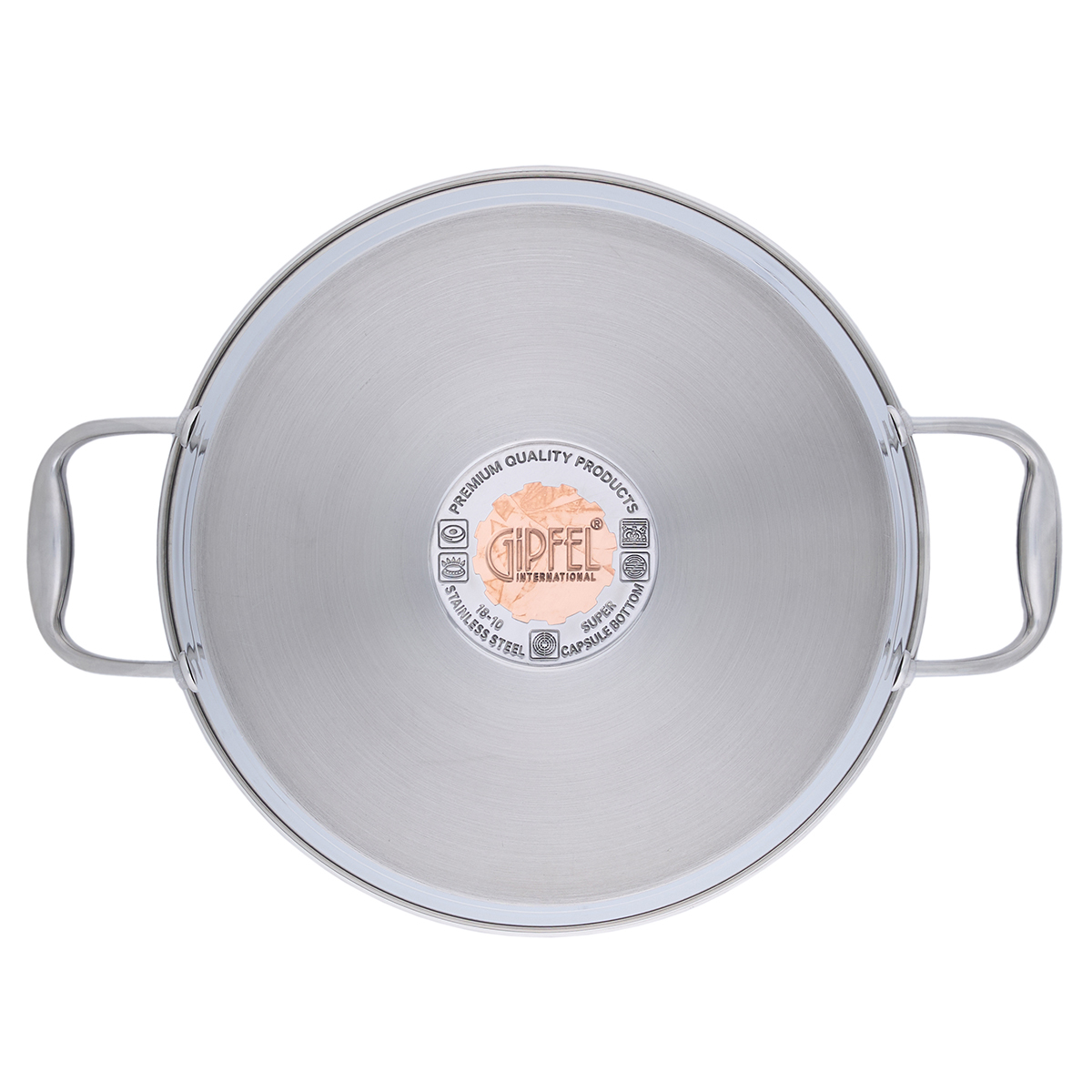 Сотейник Gipfel Cantata 1268. Размер 24x6,5 см, объем 2,5 л. Сотейник изготовлен из нержавеющей стали 18/10. Толщина стенок 0,7 мм. Диаметр дна 23 см.