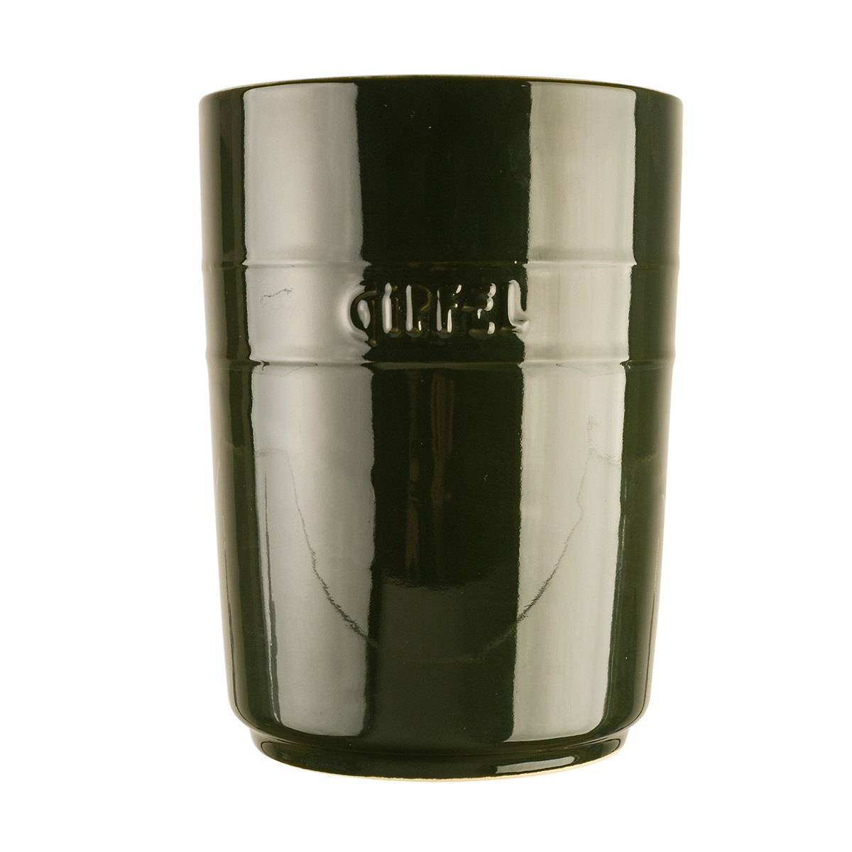 Стакан для кухонной утвари Gipfel Majolica 3918. Объем 900 мл. Размер 11х15 см. Стакан-подставка выполнен из жаропрочной керамики темно-зеленого цвета.