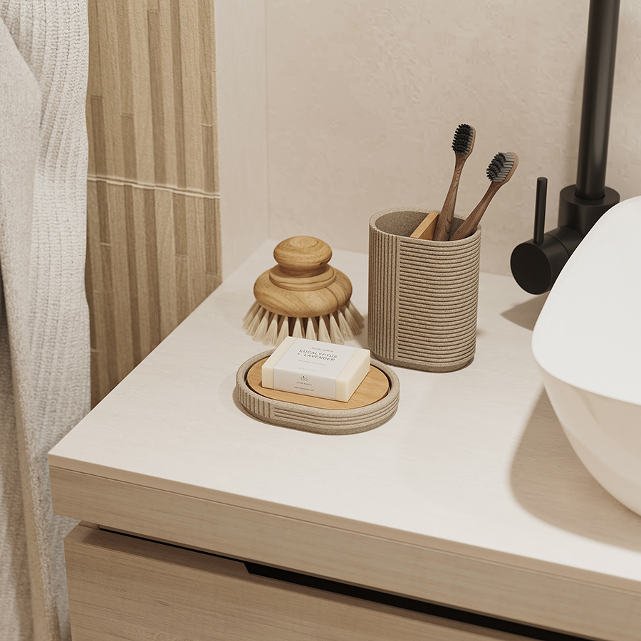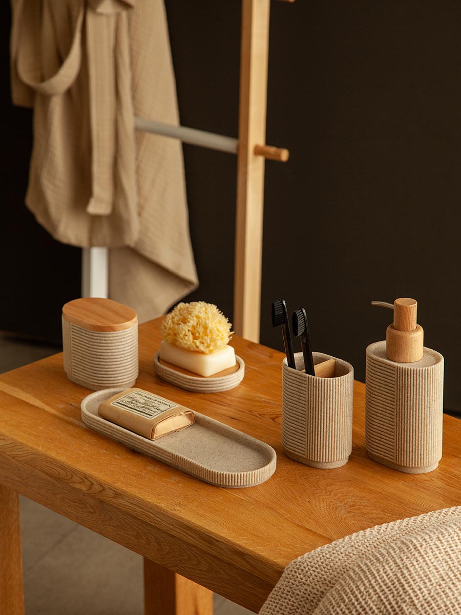 Стакан для зубных щеток Dune – отличное решение для тех, кто любит сочетание базовых оттенков и необычных фактур.