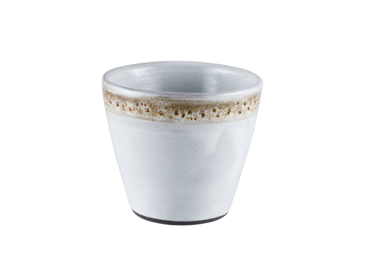 Серия посуды Meringue изготовлена из высококачественной керамики и выделяется коричневой окантовкой по краям на общем белом фоне. Объем стакана составляет 200 мл.