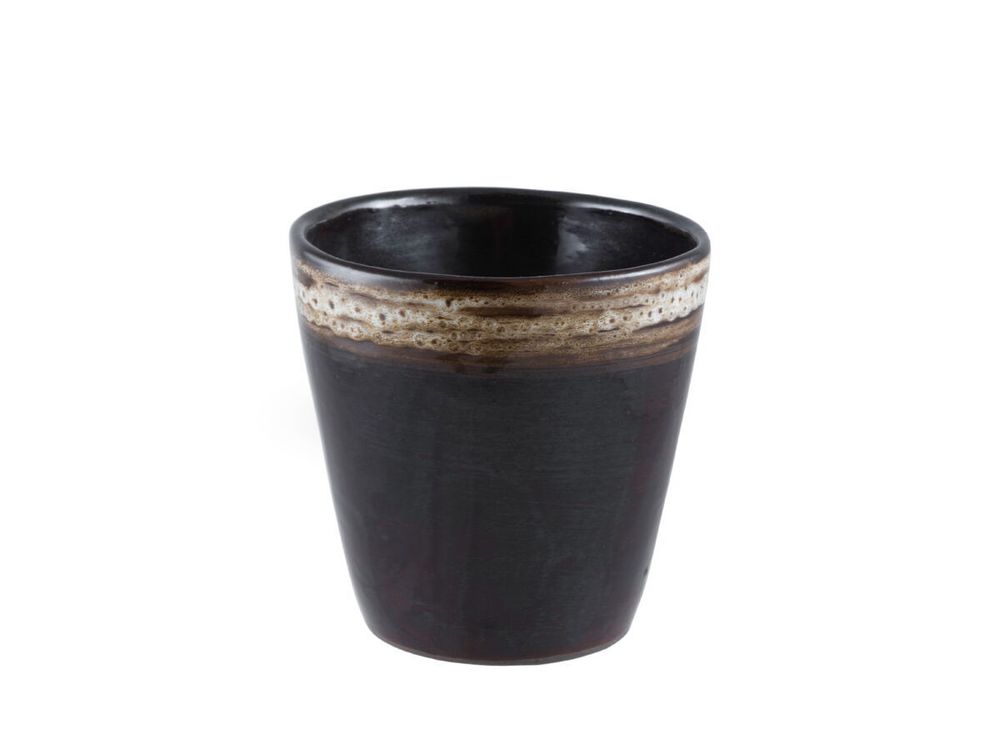 Серия керамической посуды Жареная карамель изготовлена в насыщенном черном цвете, который органично сочетается с окантовкой более светлых тонов. Все предметы серии изготовлены из качественной каменной керамики, которую можно мыть в посудомоечной машине, а также использовать в микроволновой печи и духовом шкафу. Объем стакана составляет 380 мл.