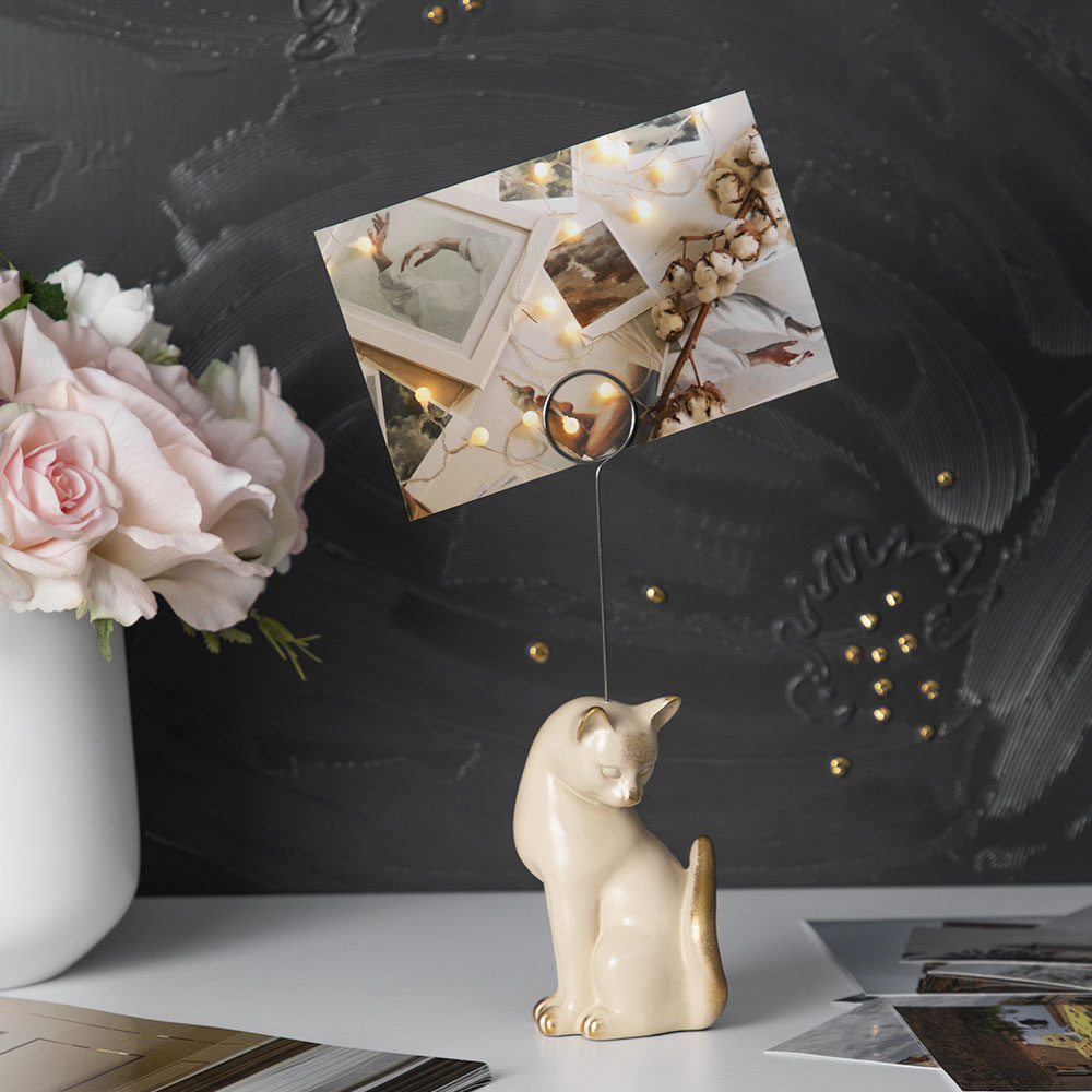 Кошка Грация с держателем (скульптура) BOGACHO. Оформление любого интерьера связано с приобретением самых разных украшений декора. Красивые держатели для канцелярских мелочей и фотографий способны украсить любое помещение. Среди огромного ассортимента самых разных товаров, представленных в нашем каталоге каждый клиент сможет найти и купить именно то, что необходимо для оформления его интерьера. Мы предлагаем эксклюзивные держатели ручной работы высокого качества и оригинального дизайна.