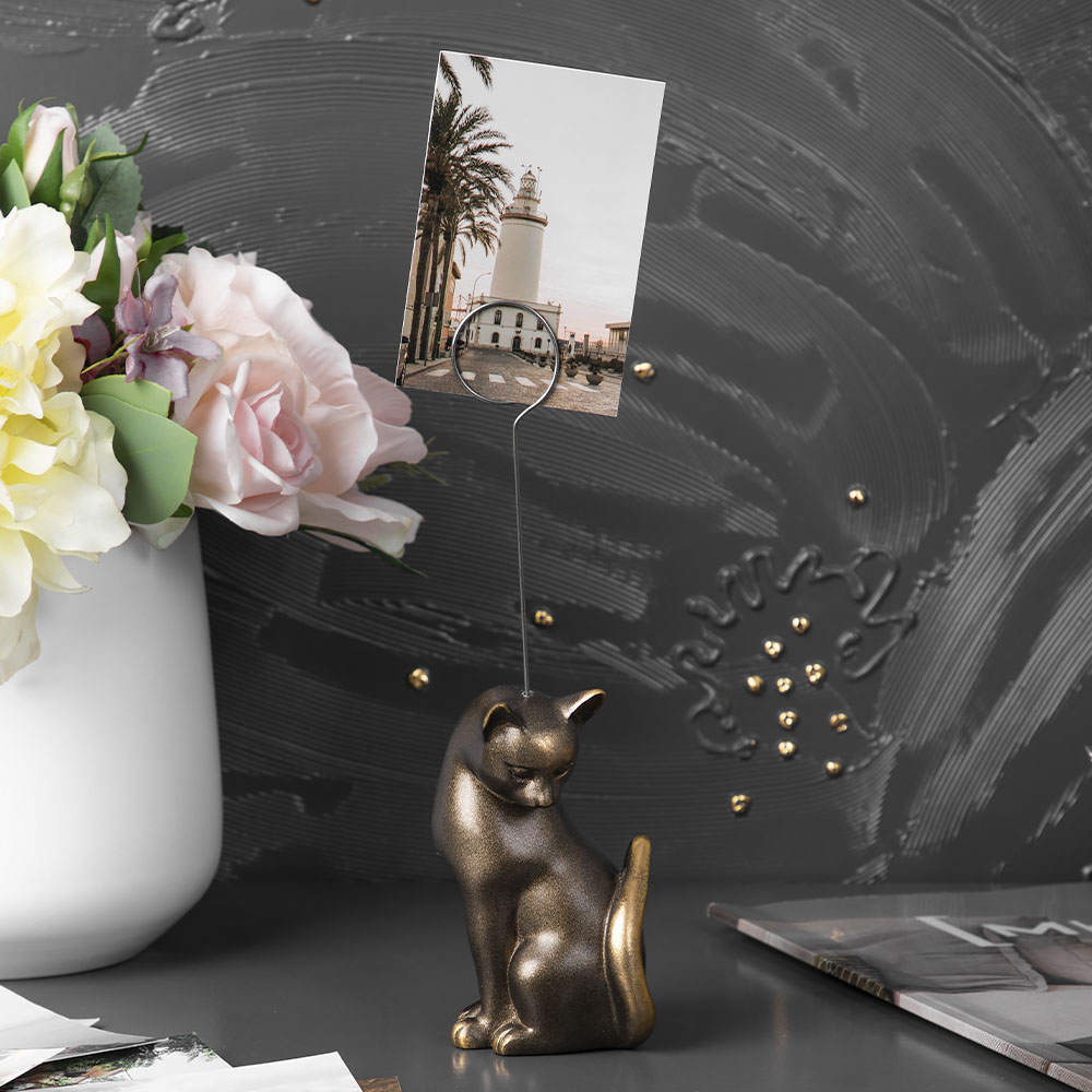 Кошка Грация с держателем (скульптура) BOGACHO. Оформление любого интерьера связано с приобретением самых разных украшений декора. Красивые держатели для канцелярских мелочей и фотографий способны украсить любое помещение. Среди огромного ассортимента самых разных товаров, представленных в нашем каталоге каждый клиент сможет найти и купить именно то, что необходимо для оформления его интерьера. Мы предлагаем эксклюзивные держатели ручной работы высокого качества и оригинального дизайна.