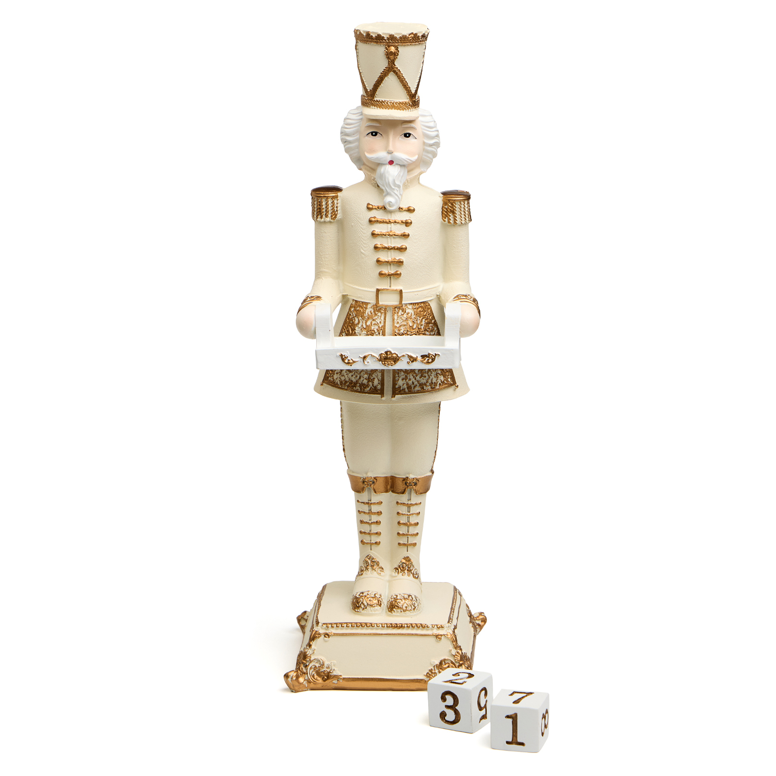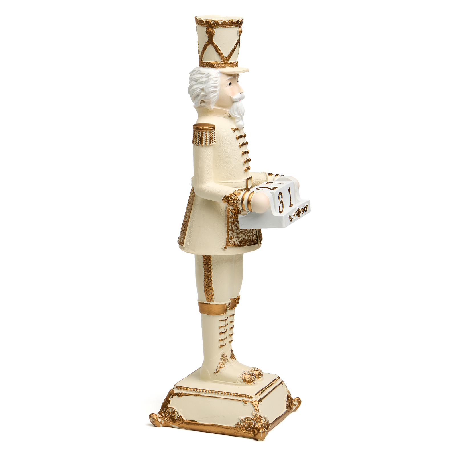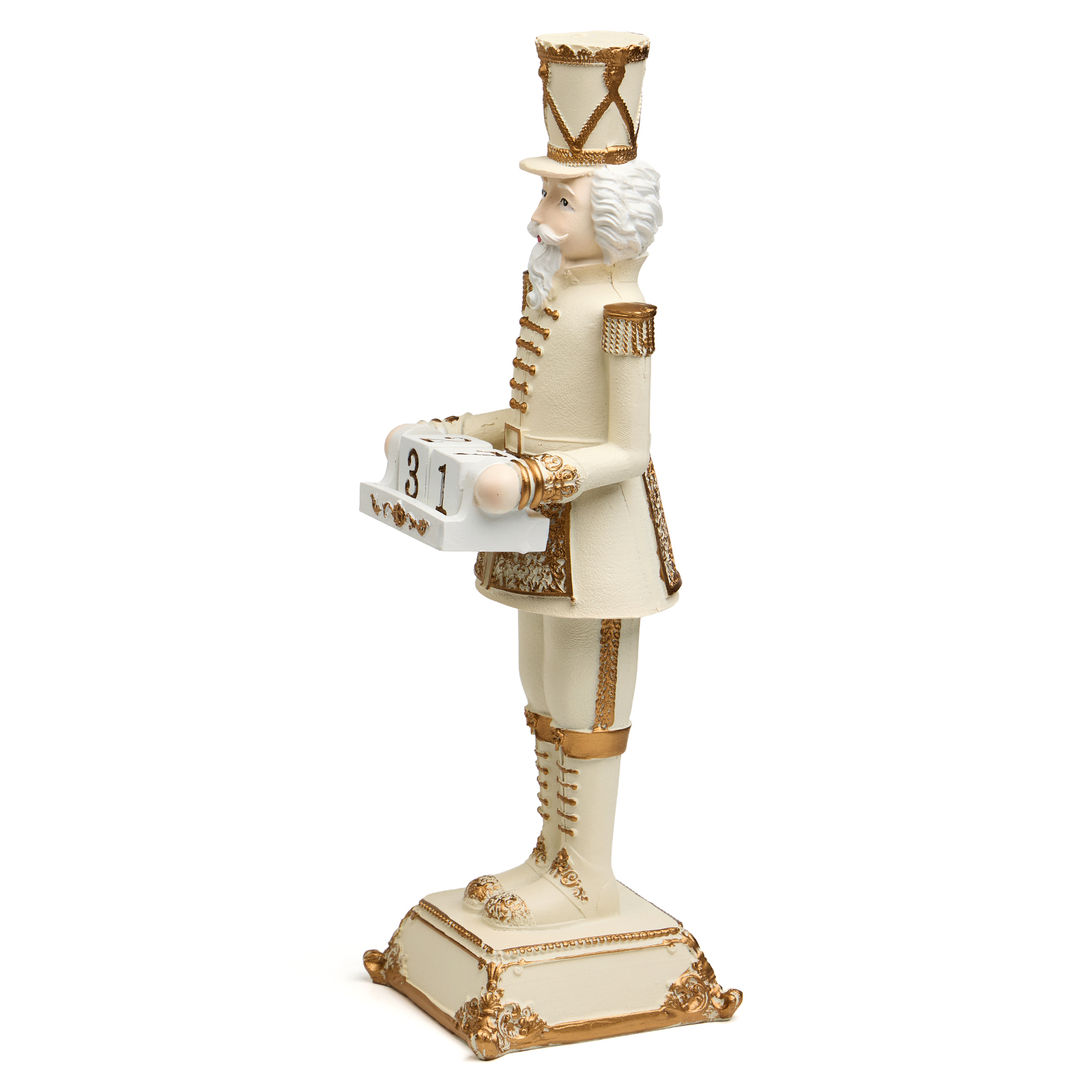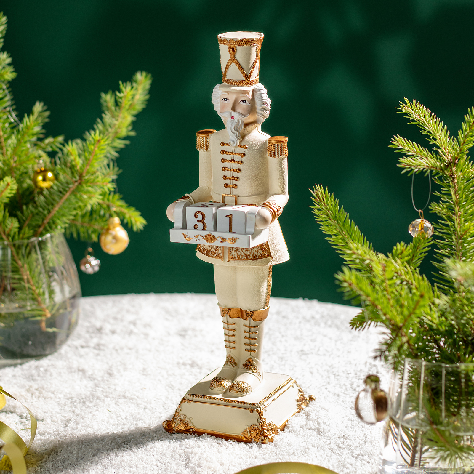 Пусть каждый день до Нового года станет маленьким праздником — с этим величественным Щелкунчиком из прочного и благородного полистоуна! Он словно вышел из знаменитой балетной сказки: в парадной форме, с высокой шляпой, золотыми пуговицами и сапогами — и держит в руках календарь, где цифры «31» напоминают о главном чуде года. Идеален как украшение и как талисман, отсчитывающий последние дни до Рождества и Нового года.
