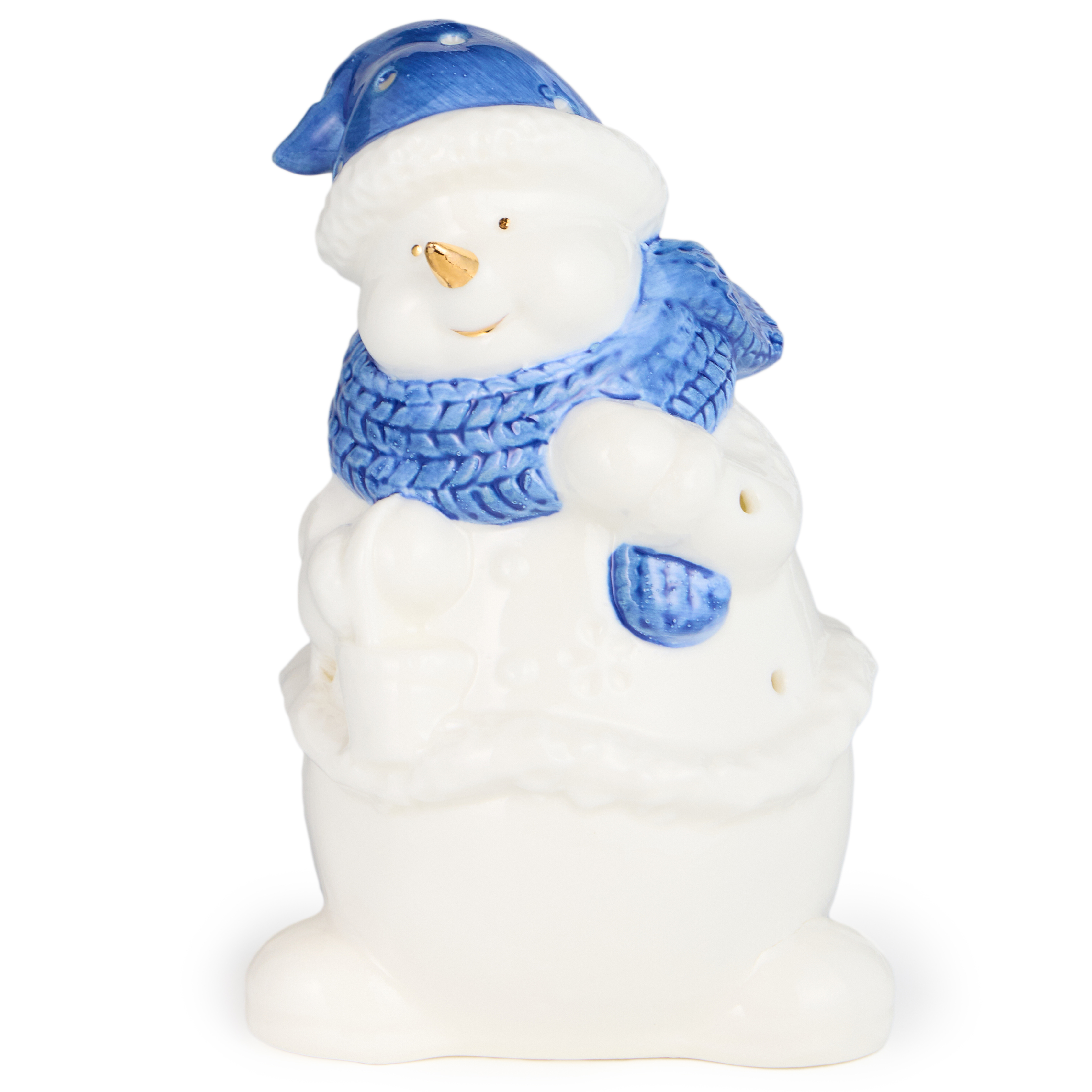 Пусть в вашем доме всегда живёт дух зимы — добрый, уютный и сказочный! Этот очаровательный снеговик из белоснежного фарфора с ярким синим шарфом и шапкой — не просто украшение, а маленький персонаж, который радует глаз каждый день. Его ласковая улыбка, золотой носик и объёмный шарф создают ощущение тепла и веселья, даже когда за окном метель. - Высококачественный фарфор — гладкий, прочный, с благородным блеском; - Яркие синие детали — шапка и шарф с фактурной вязкой — добавляют цвета и характера; - Золотые акценты — носик, глазки, пуговицы — придают фигурке шарма и изысканности; - Удобная форма — сидячий, устойчивый, идеален для полки, каминной тумбы, стола или книжной полки; Идеально подойдёт: ✔️ Для тех, кто ценит натуральные материалы и минимализм; ✔️ В качестве подарка — для детей, подруг, мам или любителей зимней тематики; ✔️ Для создания уютной атмосферы — особенно в зимние вечера или как постоянный элемент декора. Пусть этот снеговик станет вашим талисманом зимнего настроения — он не тает, не шумит, но всегда улыбается вам.