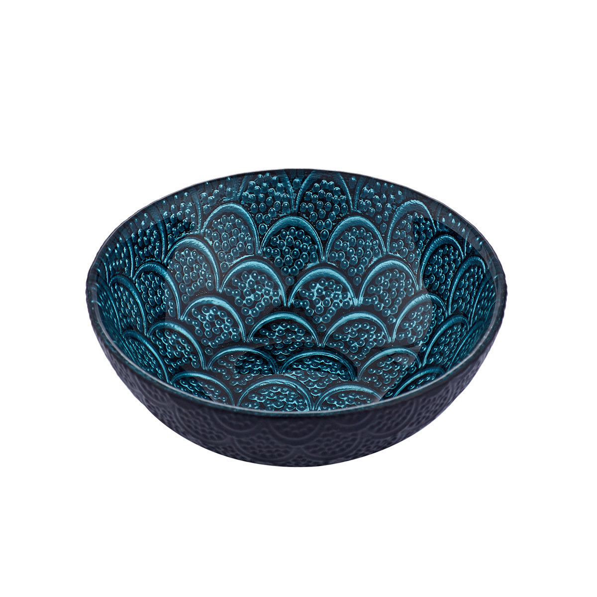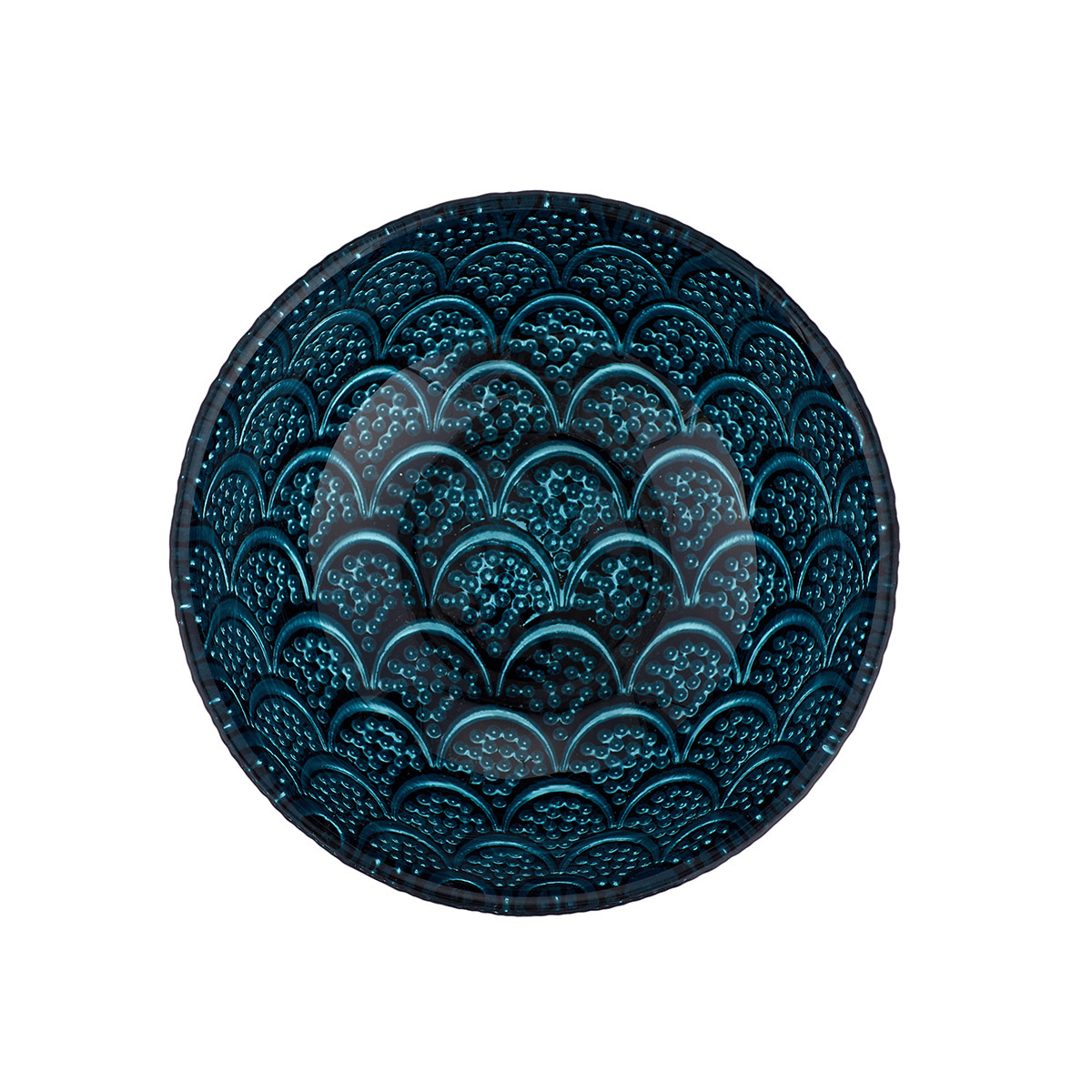 Стеклянная пиала Gipfel Bursa 40889 насыщенного синего цвета диаметром 11см. Пиала двухцветная и снаружи имеет черную поверхность и рельефный рисунок «чешуя дракона», который смотрится очень эффектно. Пиалы серии Bursa представлены в разных цветах, из них вы можете собрать целый набор в едином стиле.