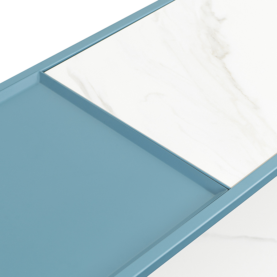 Материалы: столешницы – углеродистая сталь, керамика; каркас – сталь с порошковым покрытием. Размеры: 120х35х76 см. Цвет: белый/бирюзовый.