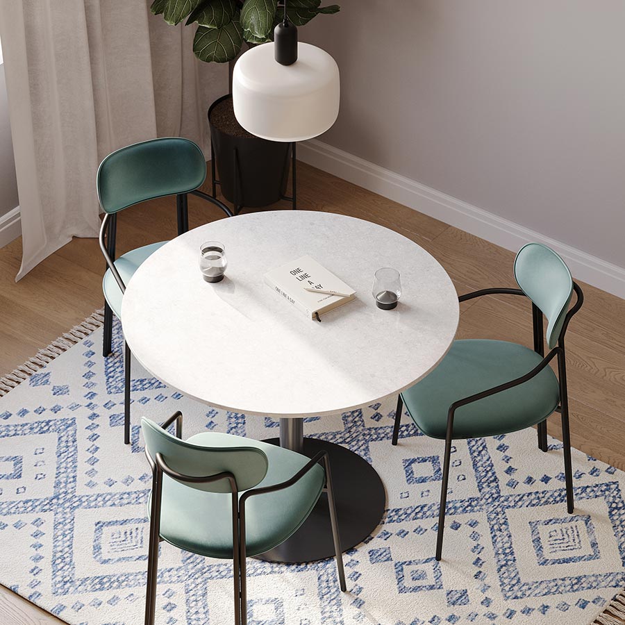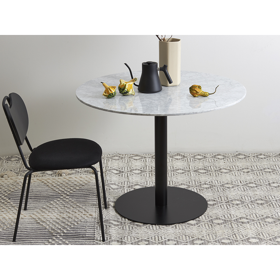 Стол обеденный Trond, Ø100 см, белый мрамор/черный