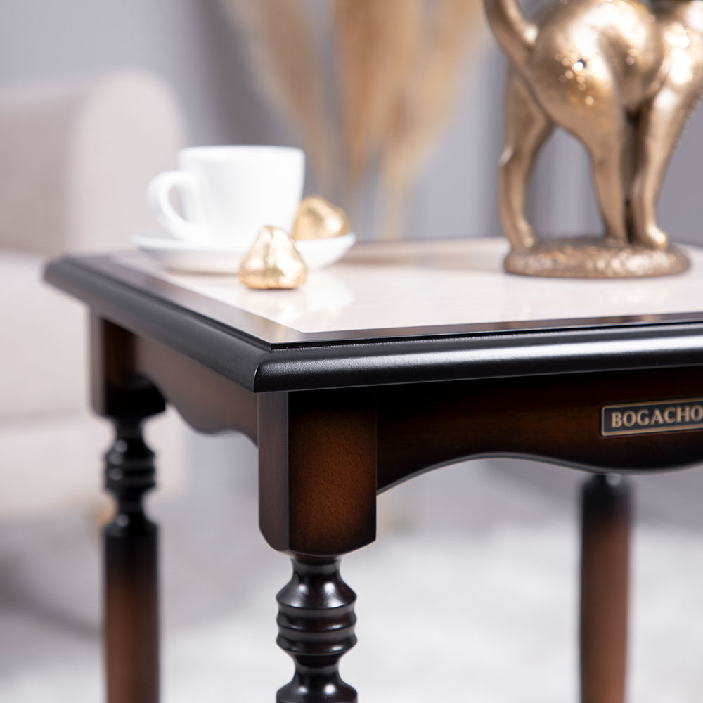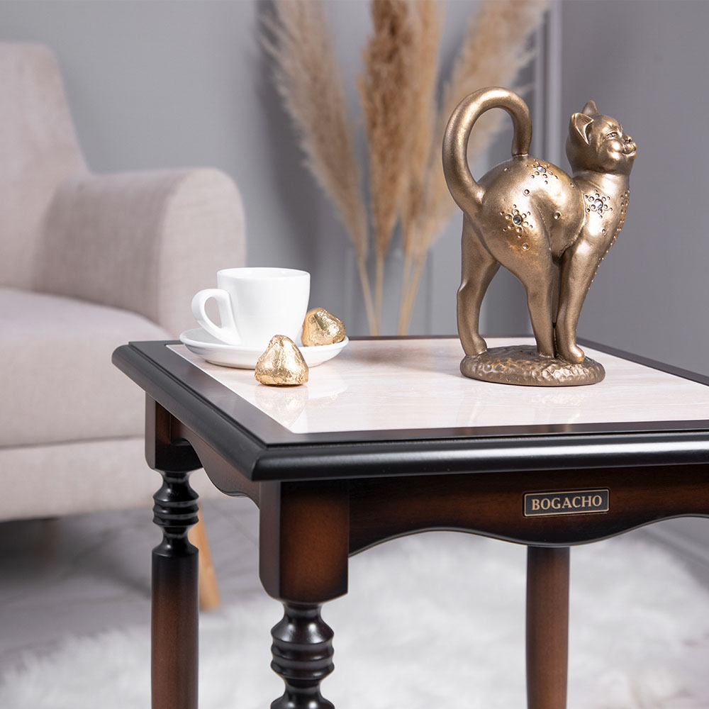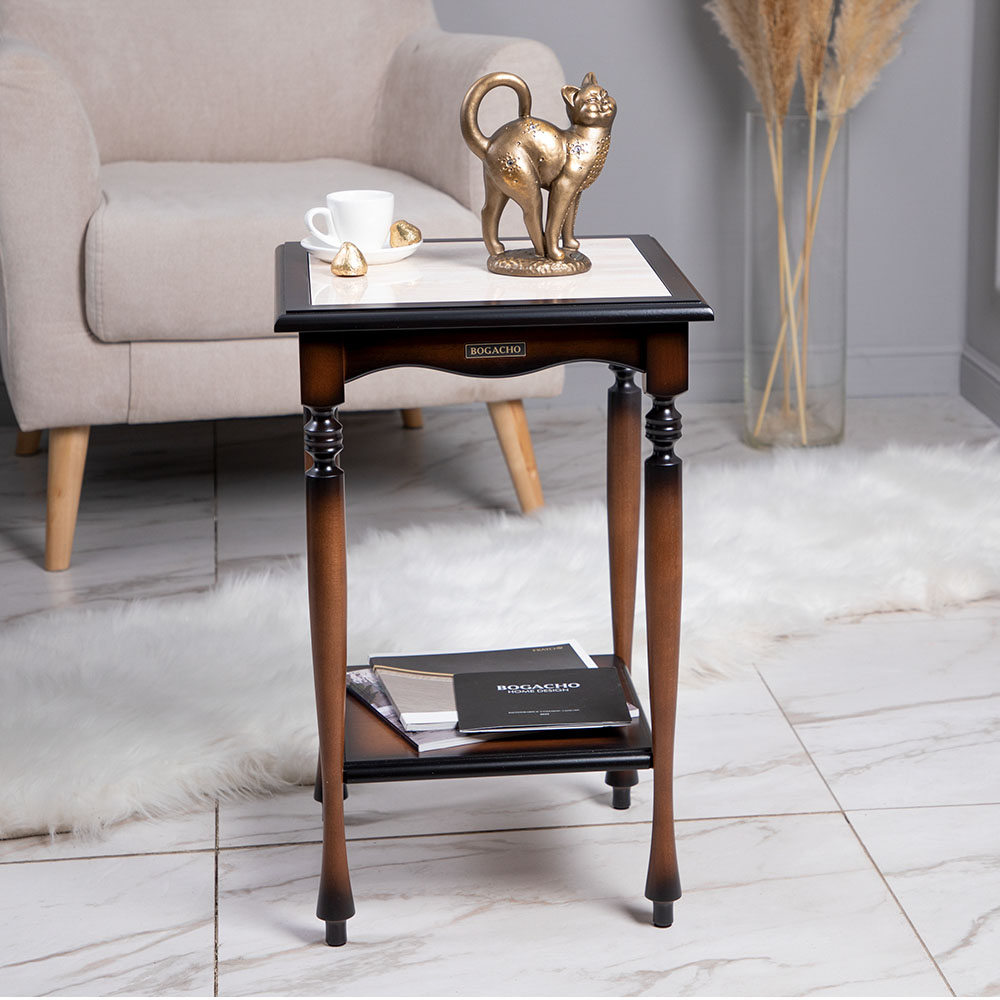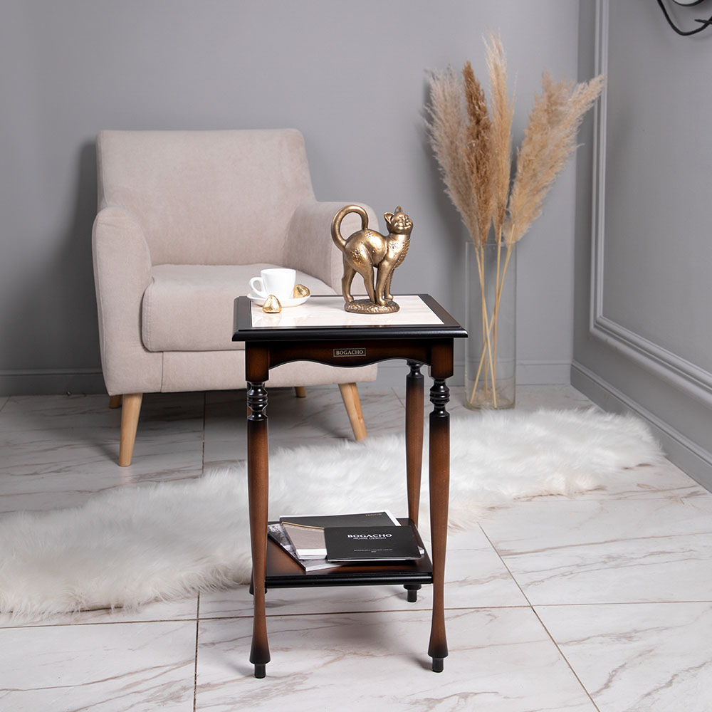 Декоративный столик Оникс 1 коричневого цвета от BOGACHO – это тонкий вкус и совершенство в деталях. Поверьте, Ваши гости не захотят уходить, пока Вы не расскажете, из какой поездки привезли такой привлекательный предмет интерьера.Не важно, собираете Вы большую компанию у себя дома или сидите вдвоём на веранде, - стол Оникс станет отличным компаньоном при любом поводе.Изделие изготовлено из Мдф вручную нашими мастерами, что гарантирует неповторимость и высокое качество готовой продукции.
