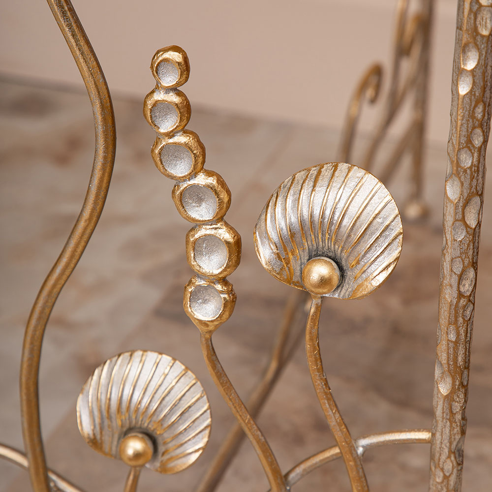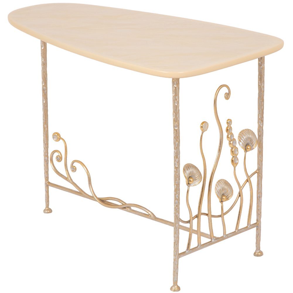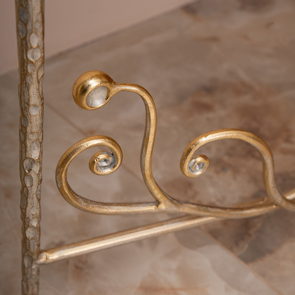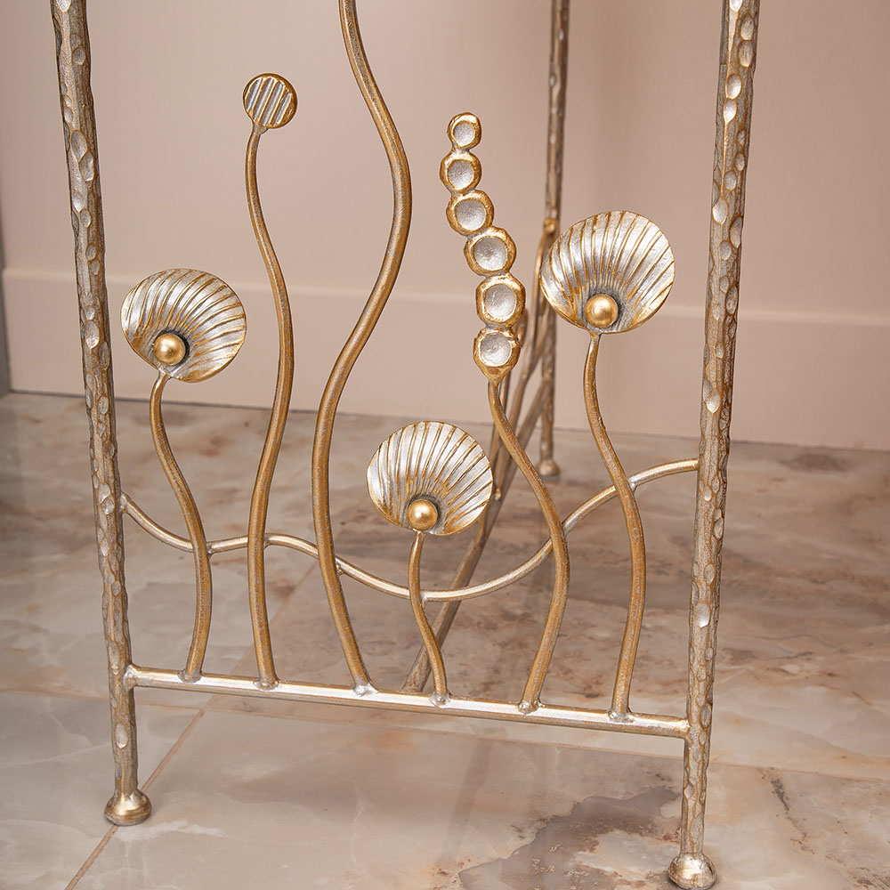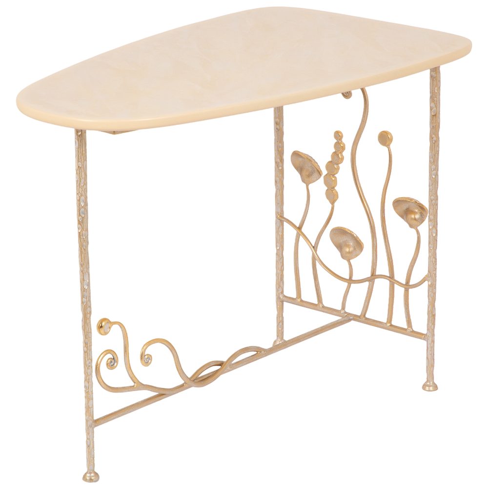 Столик декоративный «Блюм» — утончённый акцент для интерьера, созданный, чтобы подчеркнуть вкус и стиль хозяев дома. Изделие выполнено на прочных ножках из кованой стали, что обеспечивает устойчивость и долговечность. Легкий силуэт и изысканный дизайн позволяют использовать столик как самостоятельный элемент декора или как функциональную деталь в гостиной, спальне или прихожей.