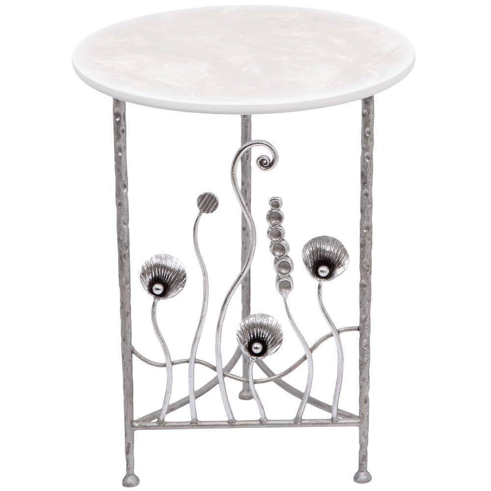 Столик декоративный «Блюм» — утончённый акцент для интерьера, созданный, чтобы подчеркнуть вкус и стиль хозяев дома. Изделие выполнено на прочных ножках из кованой стали, что обеспечивает устойчивость и долговечность. Легкий силуэт и изысканный дизайн позволяют использовать столик как самостоятельный элемент декора или как функциональную деталь в гостиной, спальне или прихожей.