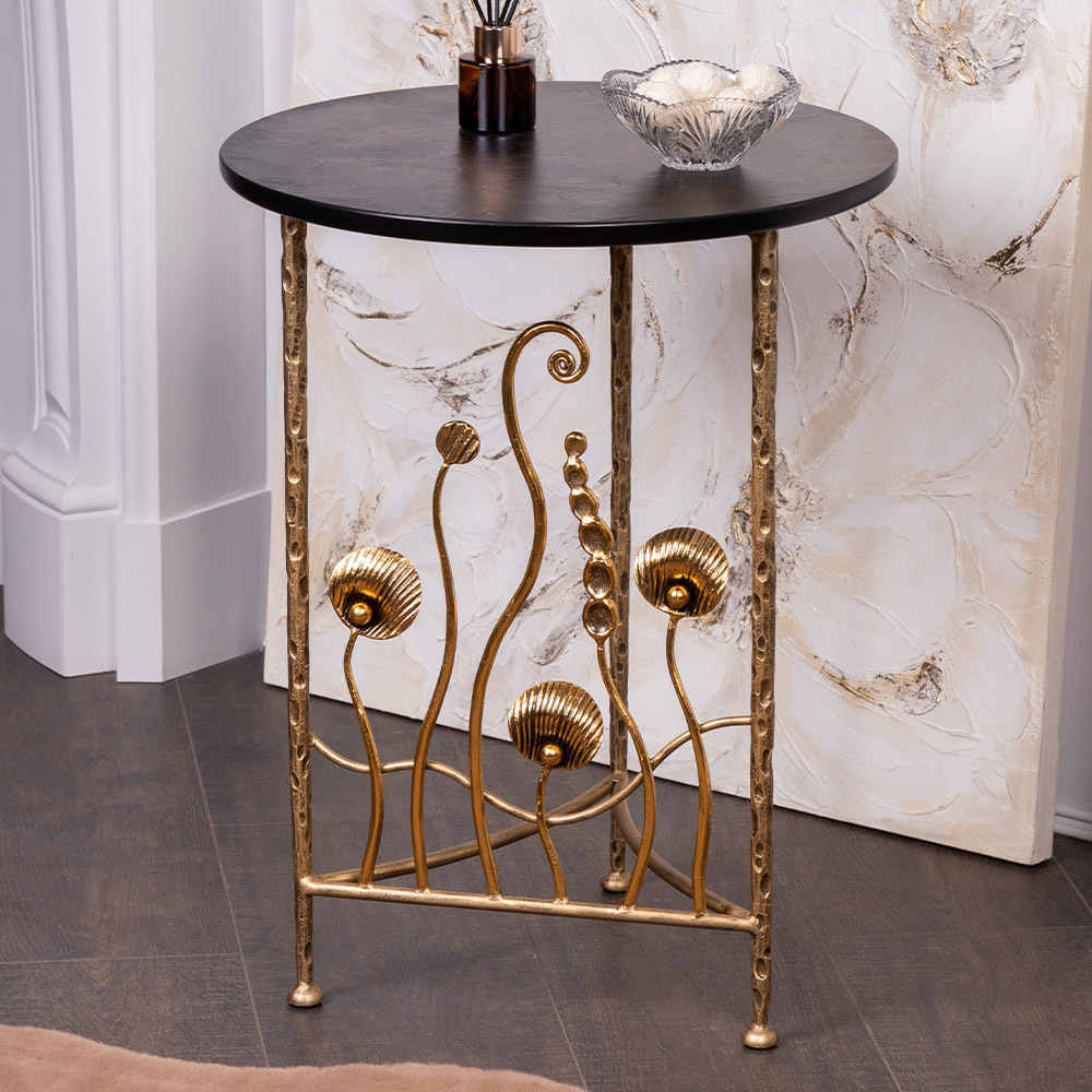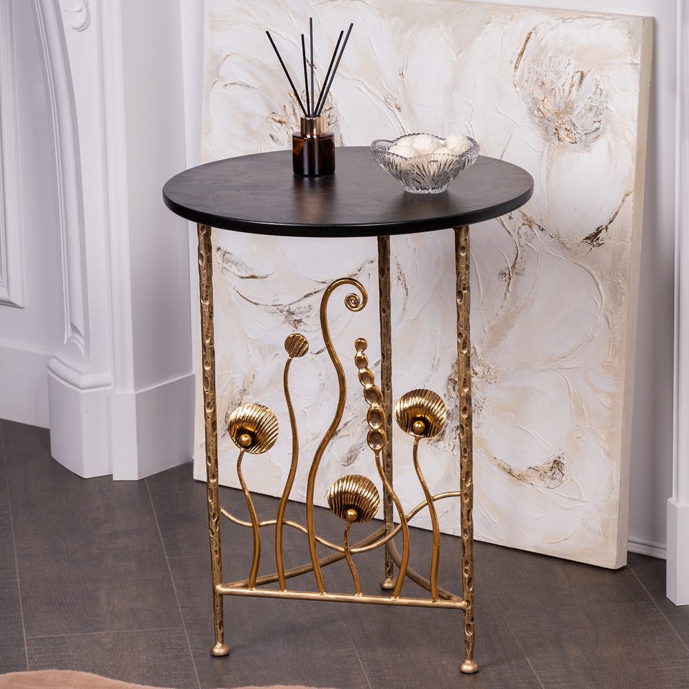 Столик декоративный «Блюм» — утончённый акцент для интерьера, созданный, чтобы подчеркнуть вкус и стиль хозяев дома. Изделие выполнено на прочных ножках из кованой стали, что обеспечивает устойчивость и долговечность. Легкий силуэт и изысканный дизайн позволяют использовать столик как самостоятельный элемент декора или как функциональную деталь в гостиной, спальне или прихожей.