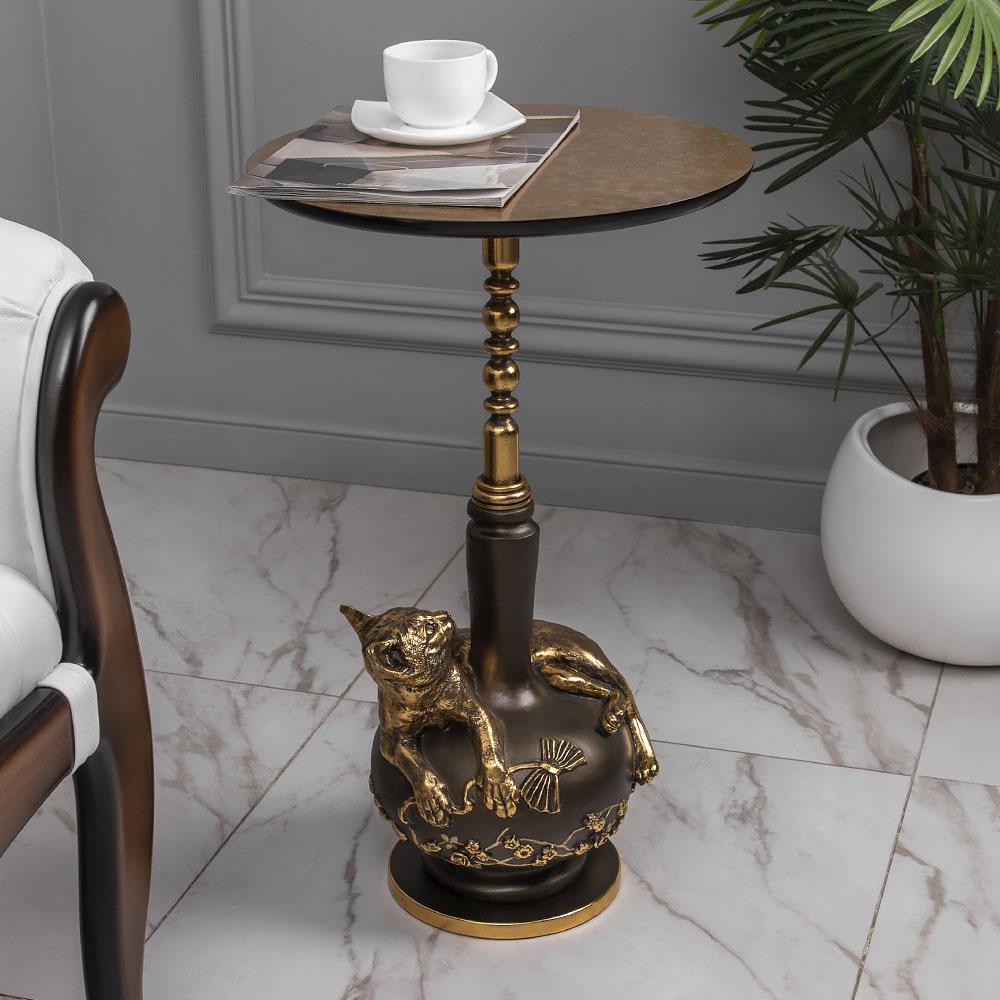 "Умиляющую картину воплотили дизайнеры BOGACHO в нашем новом декоративном столике Кошка Агнесса бронзовый со столешницей из дерева и основанием из кованой стали и стеклокомпозита (ручная работа). В этом образе сочетается пластичность и грациозность кошки и прочность материалов, из готовых изготовлено изделие.Декоративный столик Кошка Агнесса поможет создать уютную и непринуждённую обстановку, а также станет оригинальным украшением гостиной, спальни или лоджии, на которой вы будете устраивать чаепития.Наполните интерьер своего дома индивидуальными деталями и уютом вместе с BOGACHO уже сегодня!