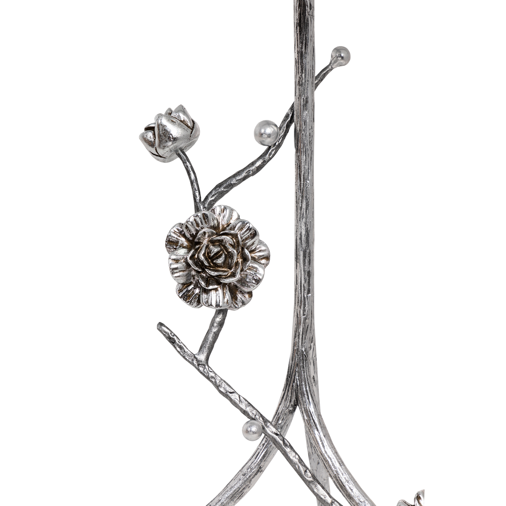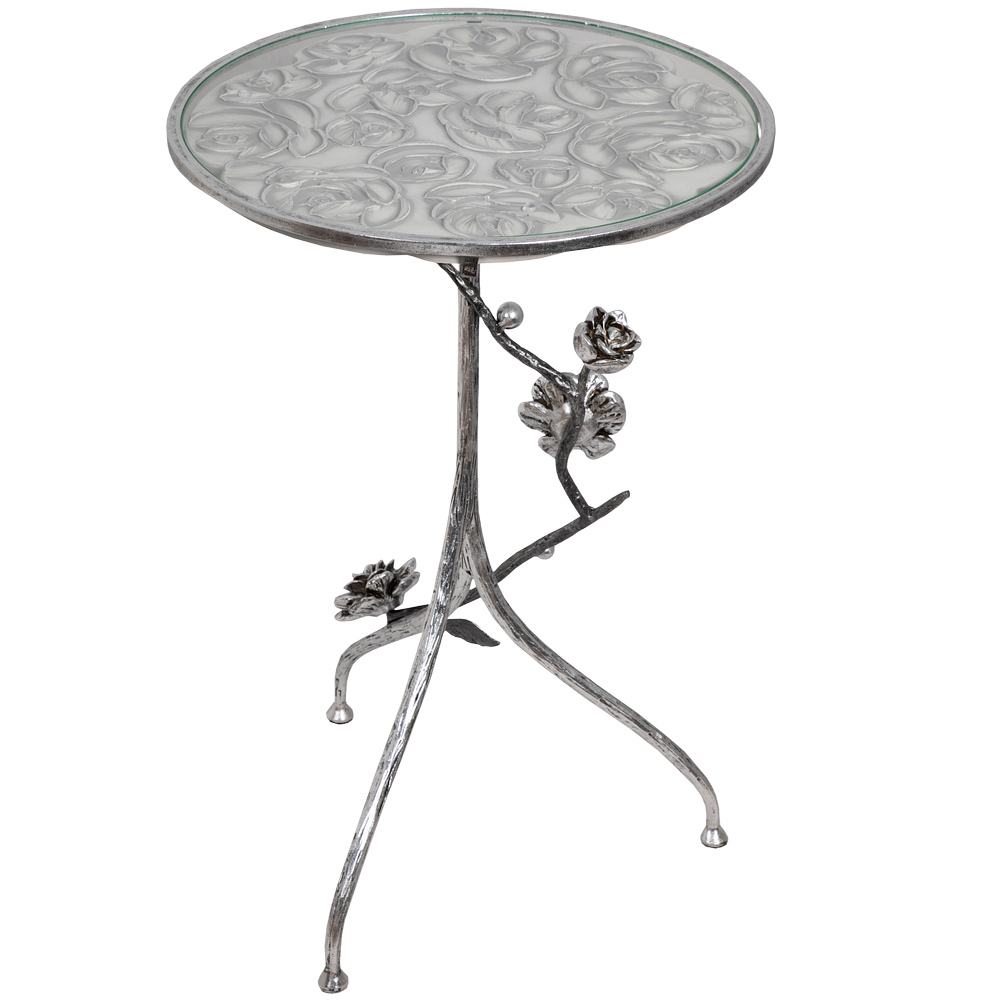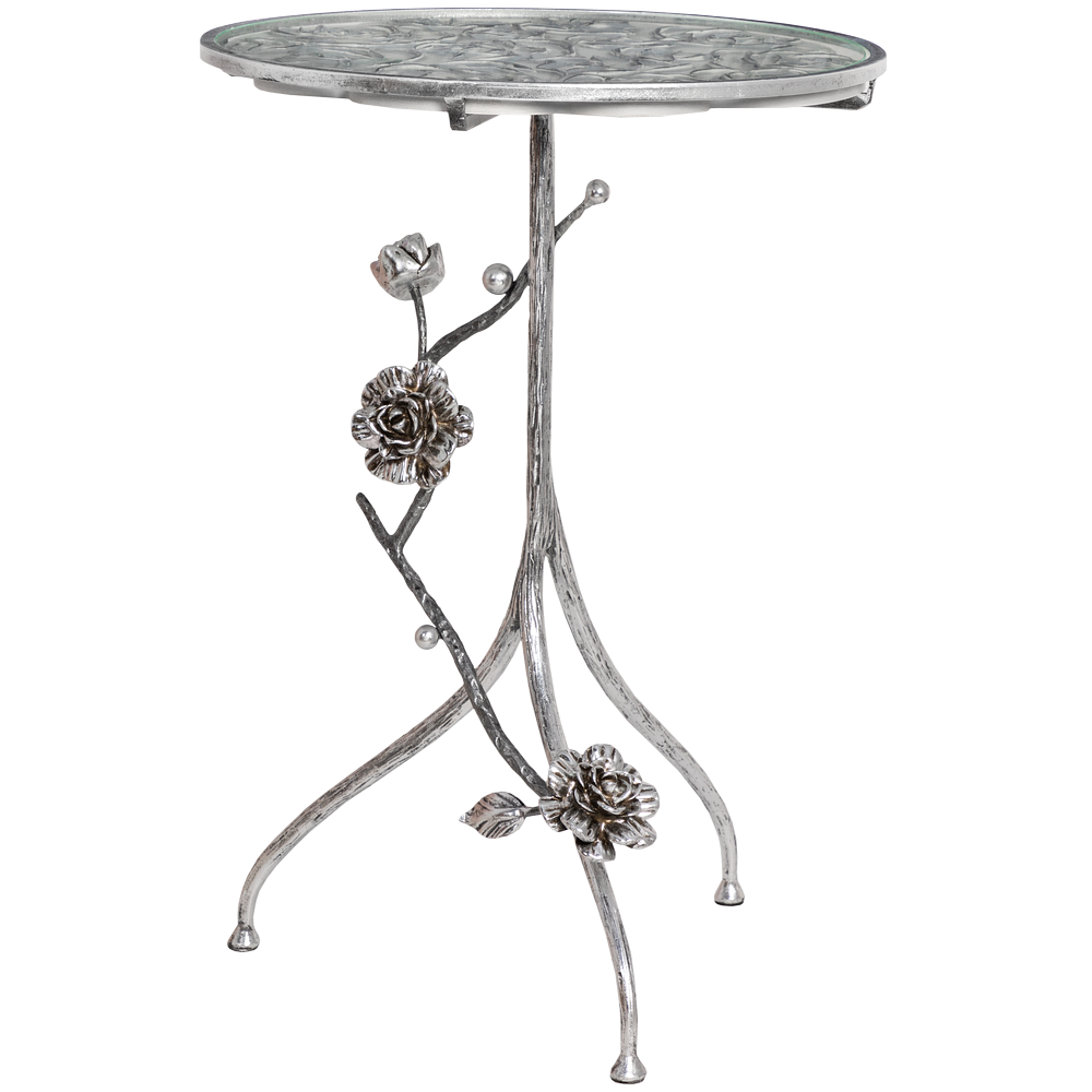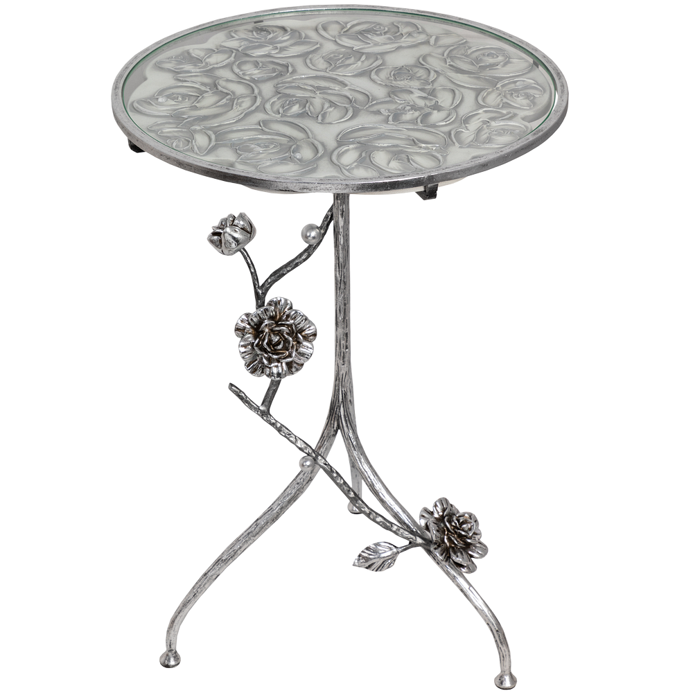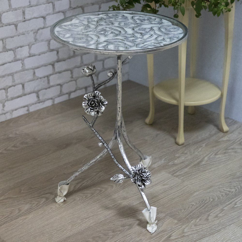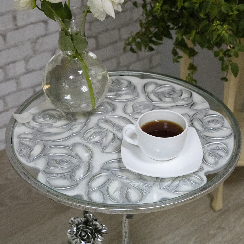 Надоели безликие современные интерьеры? Добавьте новых красок и индивидуальности в дизайн своей комнаты, наполнив его приятными деталями. Наслаждайтесь горячим кофе по утрам и какао вечером в своей, полной уюта, вселенной.Декоративный столик BOGACHO Роза Прованса Сангрия серебристый, со стеклянной столешницей и основанием из кованой стали, с фигурками роз из мрамора удачно будет смотреться в гостиной, на балконе или веранде. Изделие производится вручную: ножки выкованы из стали нашими кузнецами. Столешнице хочется уделить особое внимание, поскольку рисунок наносится вручную. Из-за этого каждое изделие получается по-своему красиво и необычно, наполнено настроением и душевными порывами своего мастера.Поверьте, всем знакомым захочется узнать, из какого путешествия вы привезли такую роскошь.