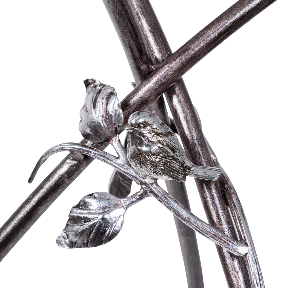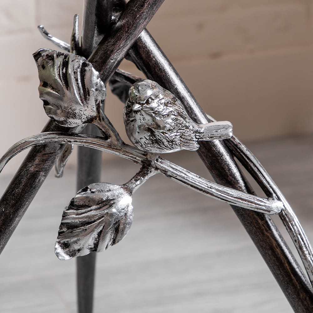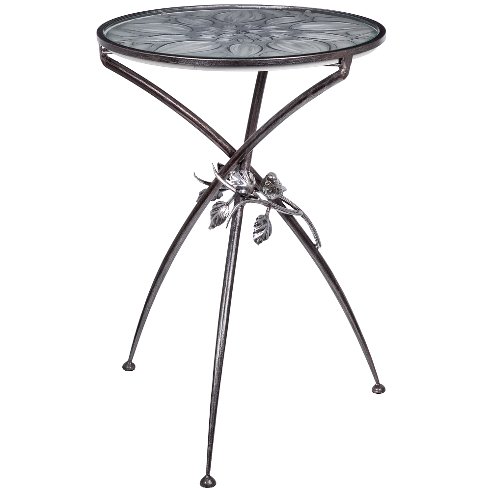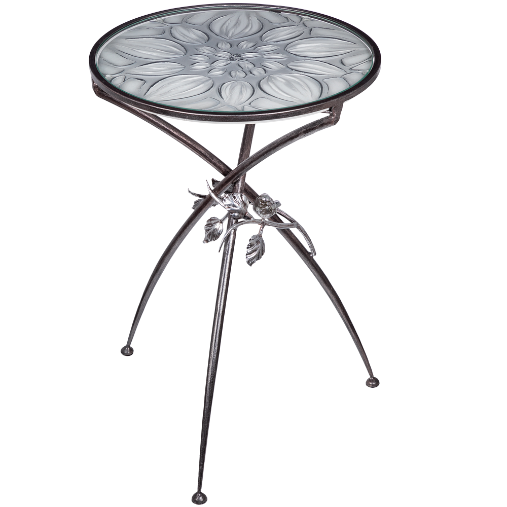 Декоративный столик BOGACHO Зарнички Санфлауэр серебристый, со стеклянной столешницей и основанием из кованой стали (ручная работа) – это оригинальный дизайн, изысканность и высочайшее качество исполнения. Он выполнен вручную, что делает его уникальным, единственным в своем роде!Большой цветок и маленькие птички на нем – этот образ во все времена нес в себе положительную энергетику. Коллекция «Зарнички» - дань той красоте, которой щедро окружает нас природа, экостиль, столь популярный в последнее время.Наполните образ своего дома оригинальностью и неповторимостью вместе с эксклюзивными изделиями BOGACHO.
