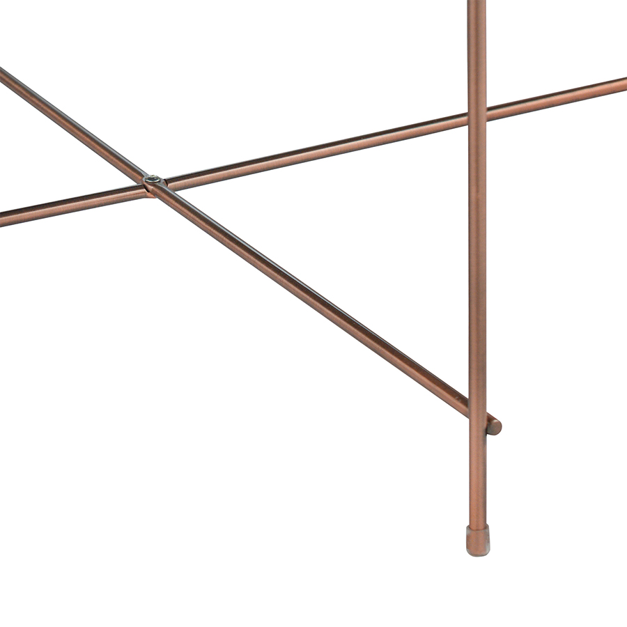 Материалы: столешница – розовое зеркало, каркас – сталь с медным покрытием. Размеры: диаметр – 84,8 см, высота – 33 см. Максимальная нагрузка: 30 кг.