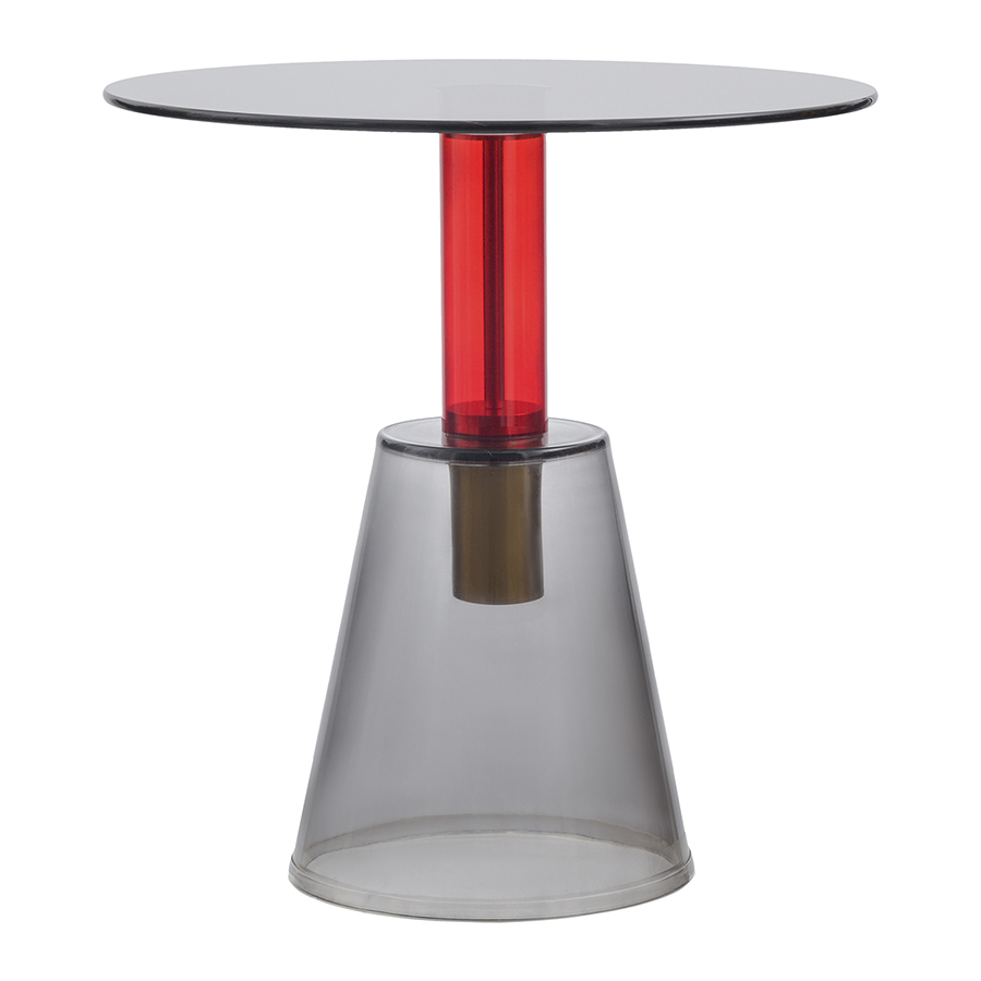 Кофейный столик Amalie привлекает внимание необычным дизайном – все элементы конструкции выполнены из стекла. Столешница и основание имеют серый оттенок. Ярким акцентом выступает ножка красного цвета. Такой предмет мебели органично вписывается в различные интерьерные стили: минимализм, фьюжн, поп-арт, хай-тек и др.
