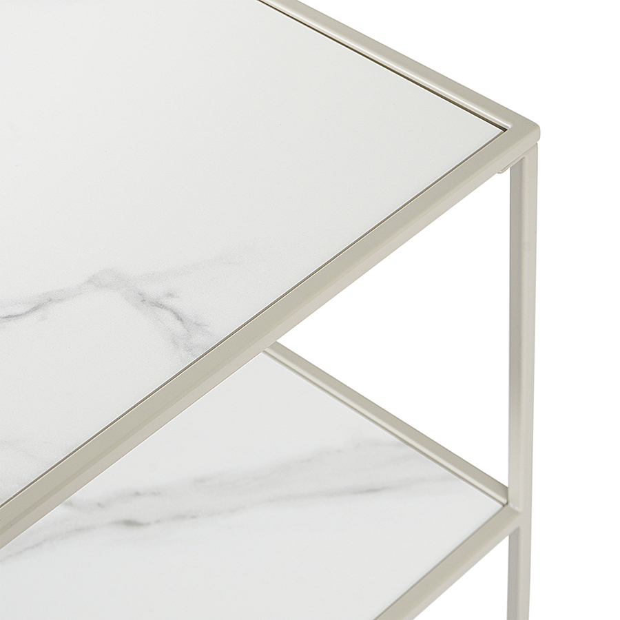 Материалы: столешница – керамика, каркас – сталь. Размеры: 38х38х52 см. Цвет: бежевый.