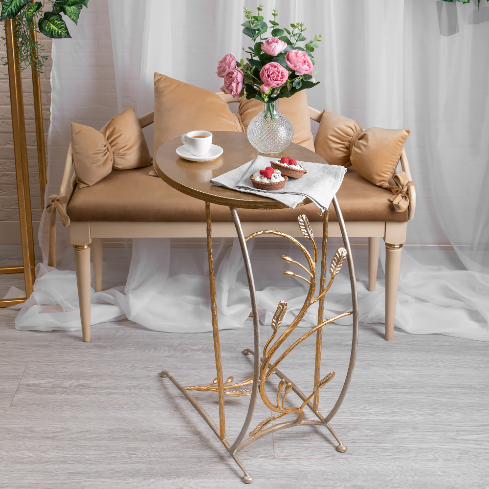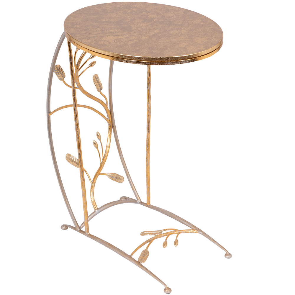 Столик приставной ручная ковка "Oliva Branch" от BOGACHO с эксклюзивным дизайном станет настоящим украшением Вашего пространства. Изделие изготовлено с учётом Ваших потребностей в пространстве и стиле. Стол не перегружает интерьер из-за своей лёгкой конструкции. Его силуэт намеренно сглаживается и смягчается плавными линиями. Обтекаемость форм позволяет совместить изделие с интерьером в классическом или эклектичном стилях. Стол приставной Oliva Branch призведён из кованой стали в нашей кузне, отшлифован, а затем патинирован вручную. Столешница изготовлена из Мдф. Столешница имеет форму эллипса (овал) с размерами 492х372 мм.