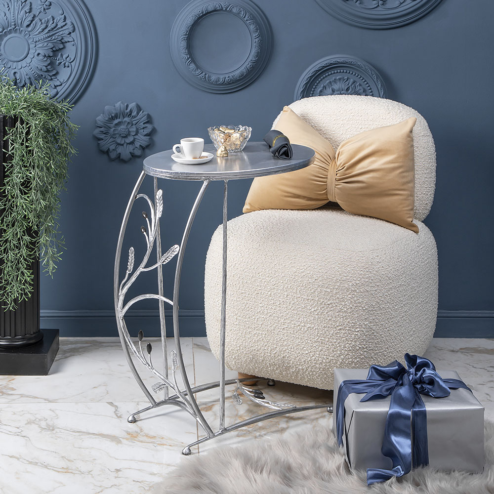 Столик приставной ручная ковка "Oliva Branch" от BOGACHO с эксклюзивным дизайном станет настоящим украшением Вашего пространства. Изделие изготовлено с учётом Ваших потребностей в пространстве и стиле. Стол не перегружает интерьер из-за своей лёгкой конструкции. Его силуэт намеренно сглаживается и смягчается плавными линиями. Обтекаемость форм позволяет совместить изделие с интерьером в классическом или эклектичном стилях. Стол приставной Oliva Branch призведён из кованой стали в нашей кузне, отшлифован, а затем патинирован вручную. Столешница изготовлена из Мдф. Столешница имеет форму эллипса (овал) с размерами 492х372 мм.
