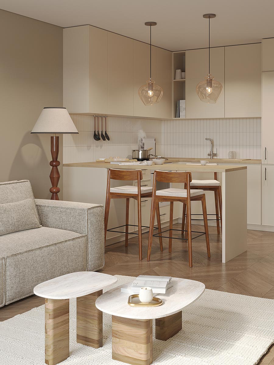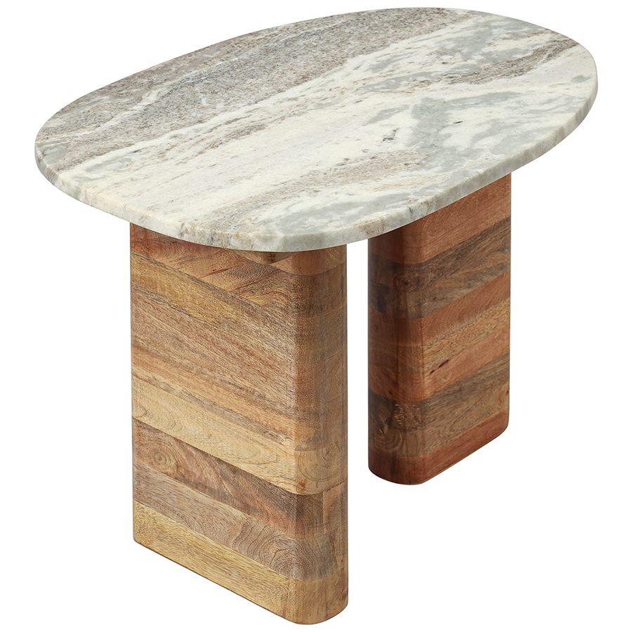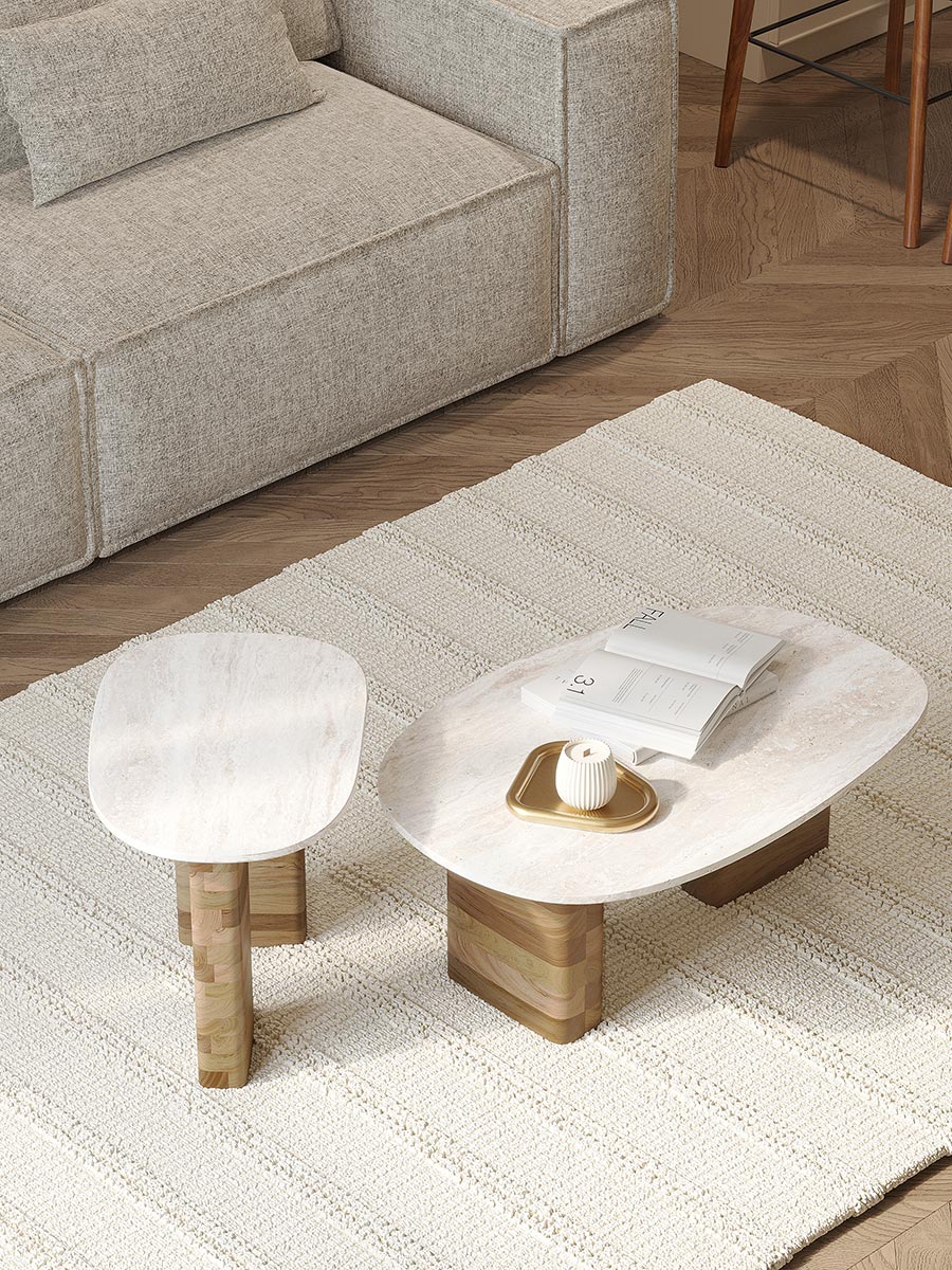 - Универсальность мрамора и естественный оттенок древесины позволяют вписать столик в интерьер, оформленный в любой цветовой гамме.
