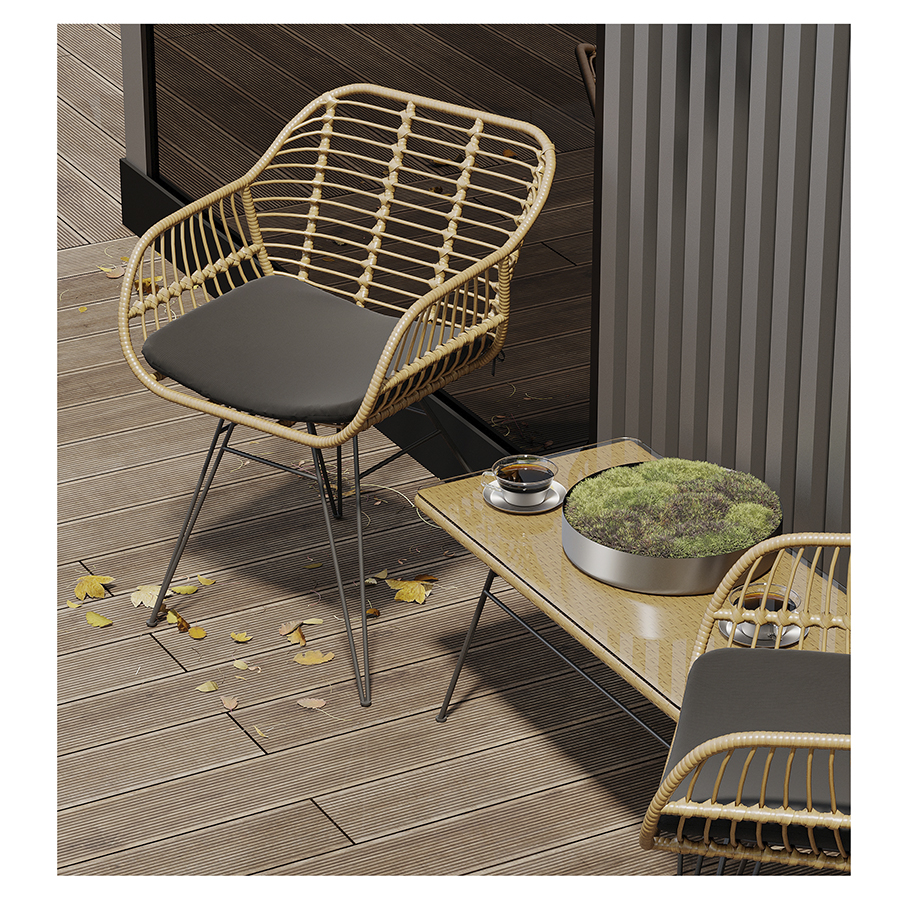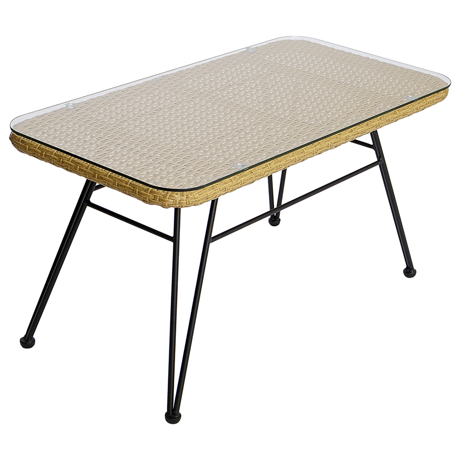 Столик журнальный Vetle – стильный акцент, который украсит собой любое пространство. Сочетание элементов из стали, искусственного ротанга и стекла обеспечивает мебели интересный вид и делает ее практичной и долговечной.