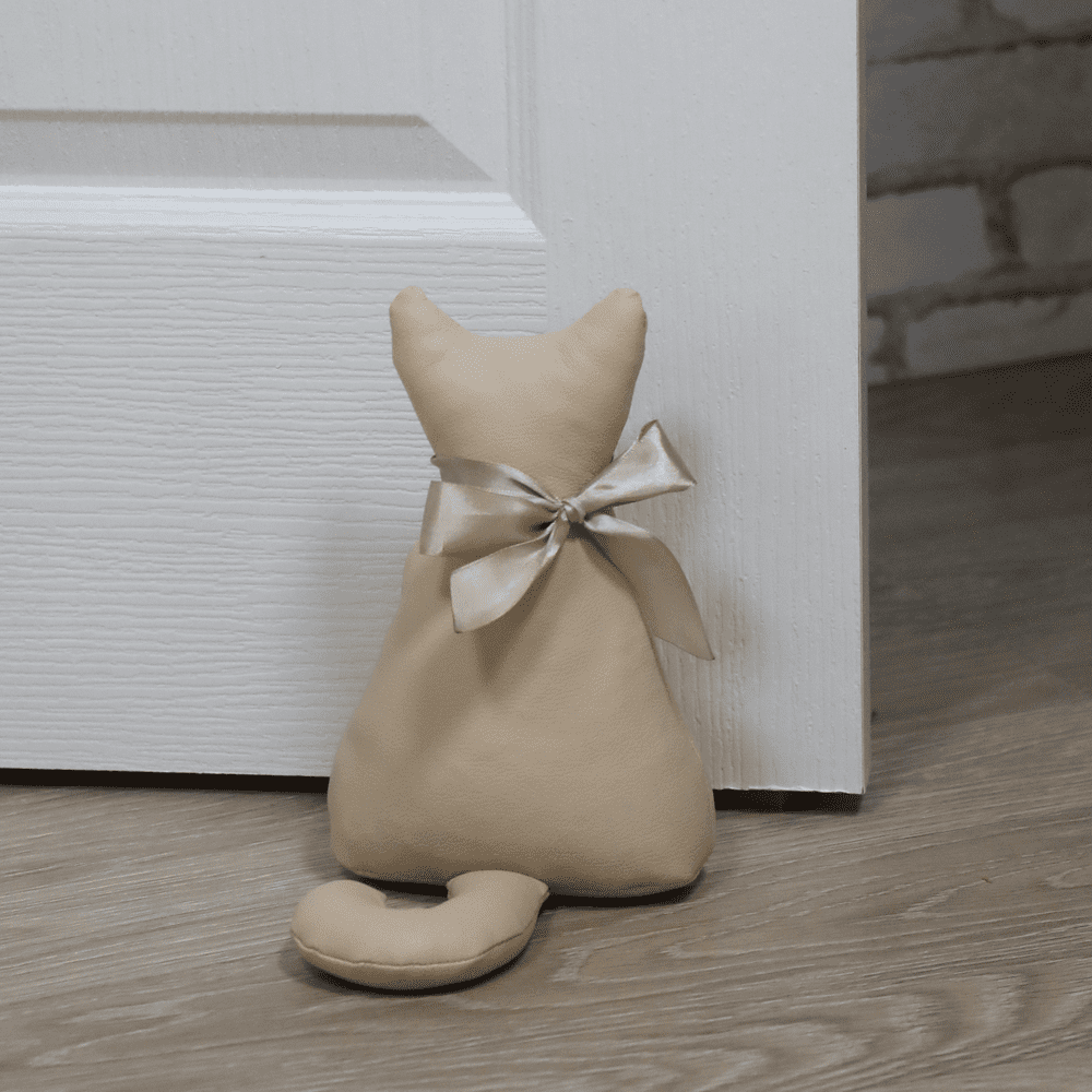 Стоппер BOGACHO – это оригинальный и стильный элемент текстильного декора. Добавьте в интерьер своего пространства уют. Стоппер BOGACHO Кошка Китти бежевого цета изготовлен из искусственной кожи и плотно набит холлофайбером и мраморной крошкой.Изделие предназначено для удержания лёгких межкомнатных дверей.