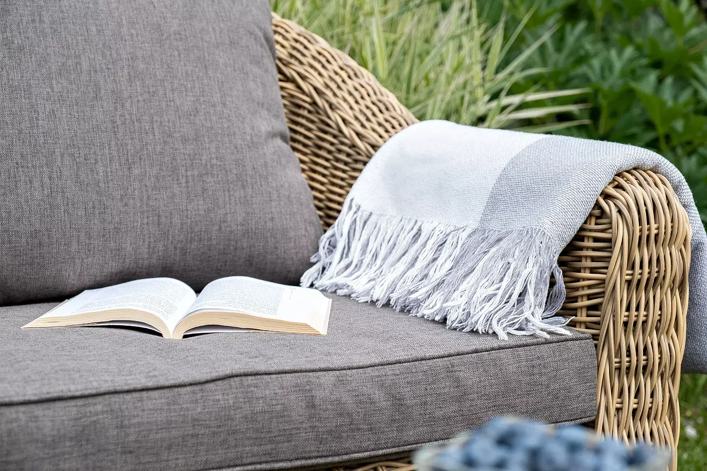 Диван и кресла укомплектованы подушками со съемными чехлами из полиэстера, плотностью 230гр/м2, с влагоотталкивающей пропиткой.