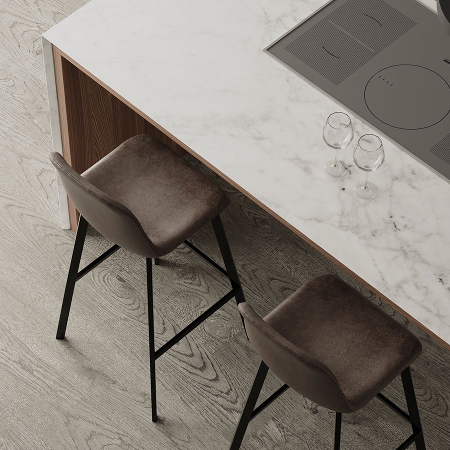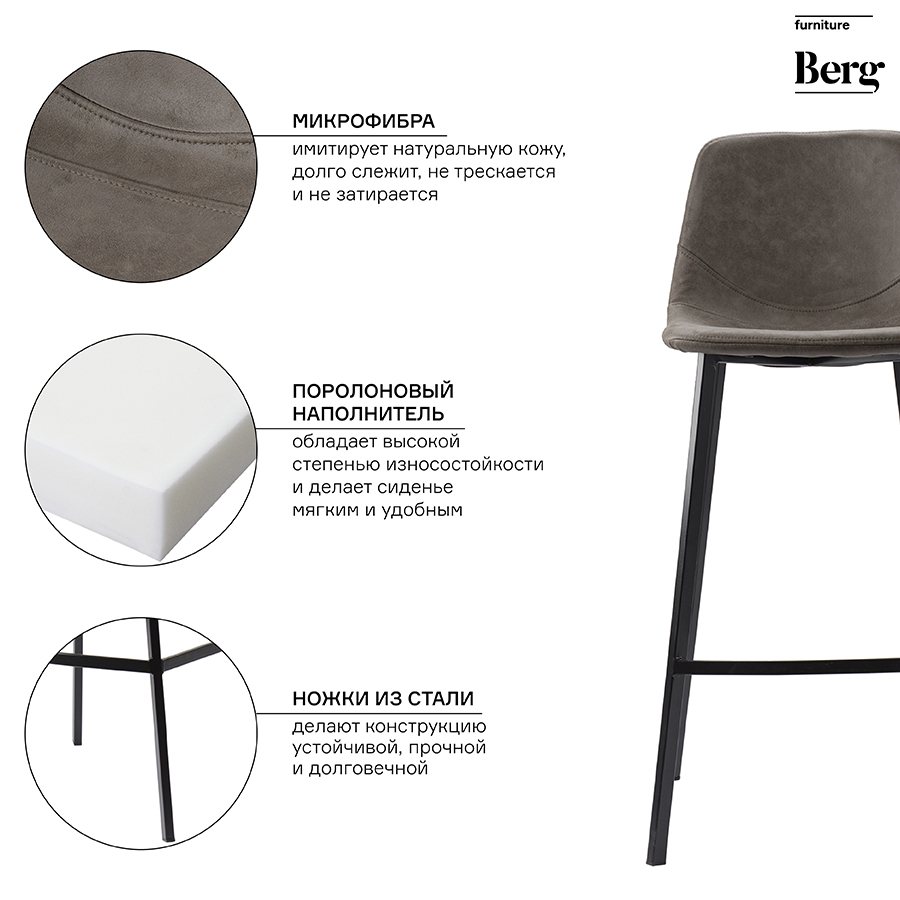 Стул барный Hugh, экокожа, серо-коричневый