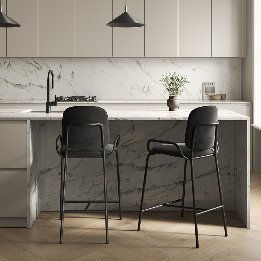 Стул барный Ror, 2 Frame, велюр, черный/черный