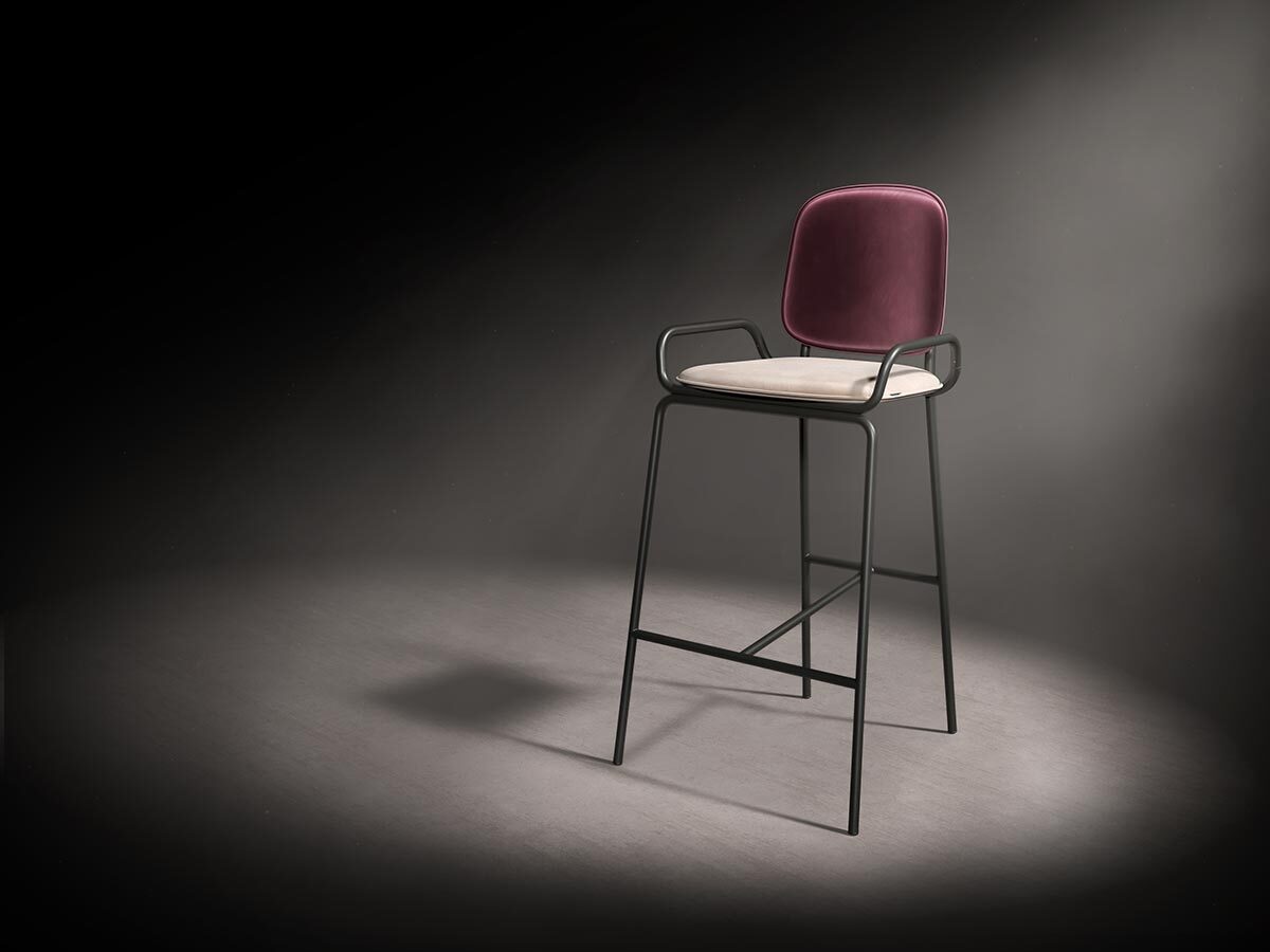Стул барный Ror, 2 Frame, велюр, черный/пурпурный/серый