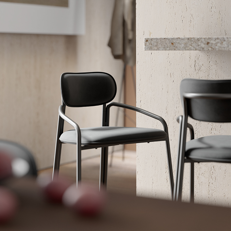 Каркас барного стула Round состоит из трех стремящихся вверх элементов, которые образуют округлый, словно окутывающий корпус. За счет отсутствия прямых углов создается легкий, гармоничный силуэт.
