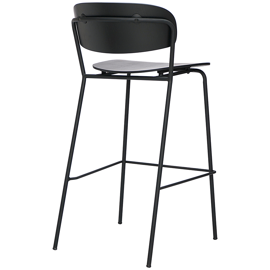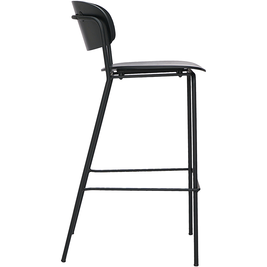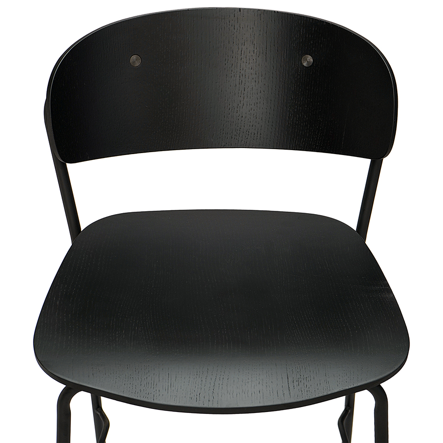 Материалы: фанера, шпон ясеня, железо. Высота сиденья: 72 см. Ширина сиденья: 43,5 см. Глубина сиденья: 40,5 см. Высота спинки: 28,5 см. Ширина спинки: 46 см. Высота подножки: 29 см. Максимальная нагрузка: 120 кг. Цвет: черный.