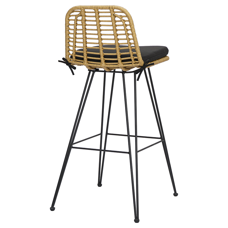 Материал: искусственный ротанг, сталь, полиэстер, пенополиуретан. Размеры: 42х54х100 см. Высота сиденья: 74 см. Ширина сиденья: 42 см. Высота подушки: 4 см. Максимальная нагрузка: 135 кг.