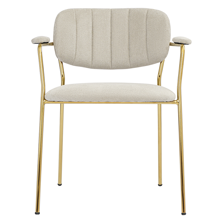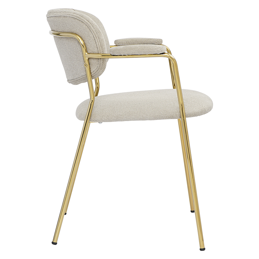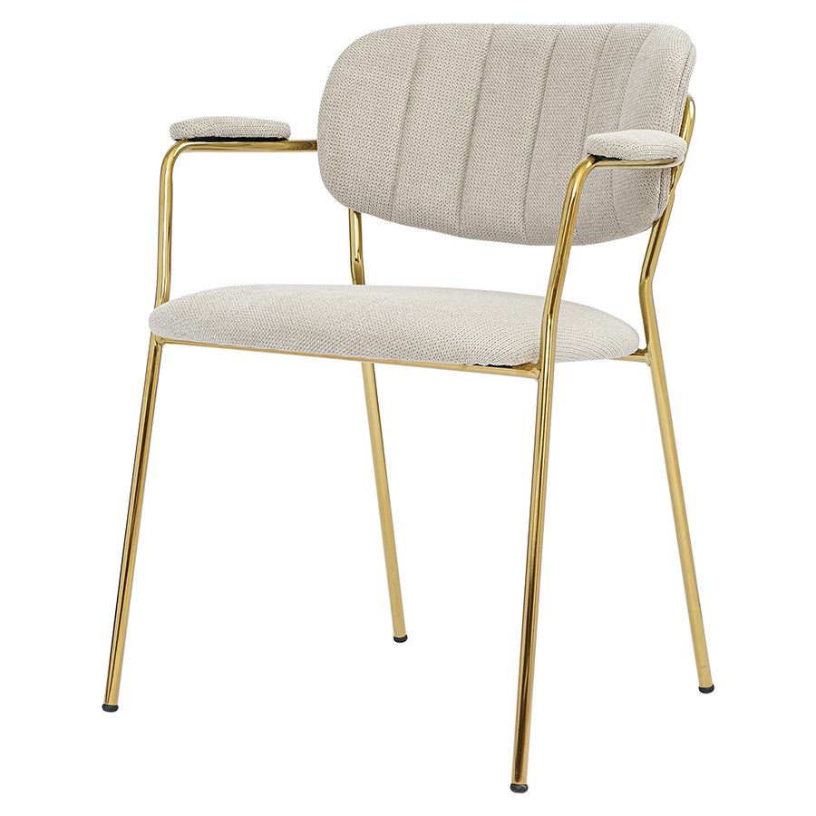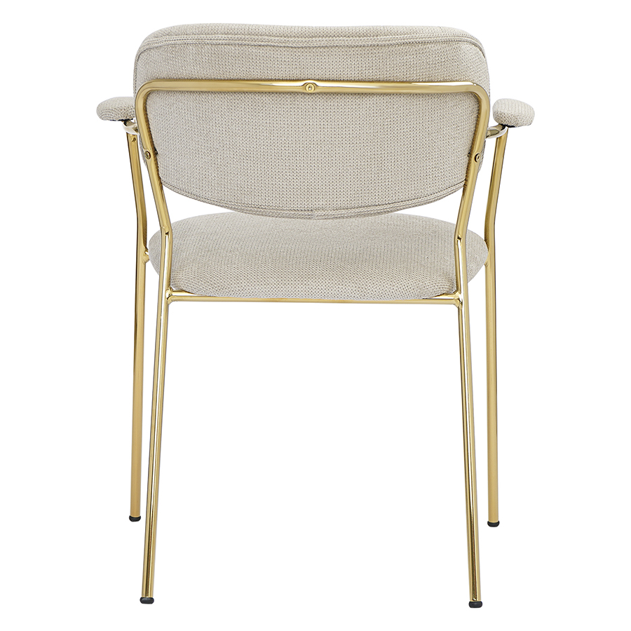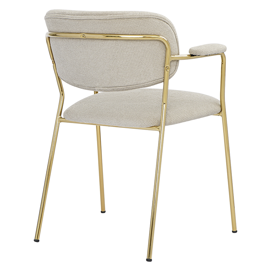 Стул Eirill с обивкой из фактурного шенилла смотрится стильно и презентабельно. Материал приятный на ощупь, износостойкий и нетребовательный в уходе. Комфорт при сидении достигается за счет широкой, полукруглой спинки, глубокой посадки и высоких подлокотников с мягкими накладками. Плавные формы и декоративная строчка делают дизайн элегантным. Практичность и долговечность мебели обеспечивает прочный и надежный железный каркас. Модель органично вписывается в интерьер, оформленный в скандинавском стиле, эклектика, фьюжн, неоклассика и др.