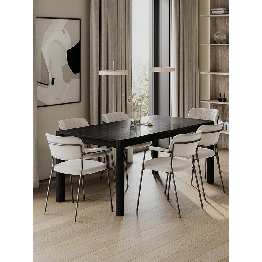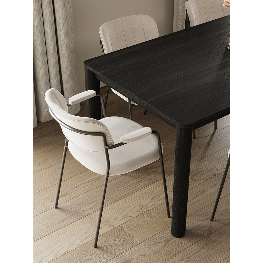 Стул Eirill с обивкой из мягкого, бархатистого велюра смотрится стильно и благородно. Материал приятный на ощупь, износостойкий и нетребовательный в уходе. Комфорт при сидении достигается за счет широкой, полукруглой спинки, глубокой посадки и высоких подлокотников с мягкими накладками. Плавные формы и декоративная строчка делают дизайн элегантным. Практичность и долговечность мебели обеспечивает прочный и надежный железный каркас. Модель органично вписывается в интерьер, оформленный в скандинавском стиле, эклектика, фьюжн, неоклассика и др.