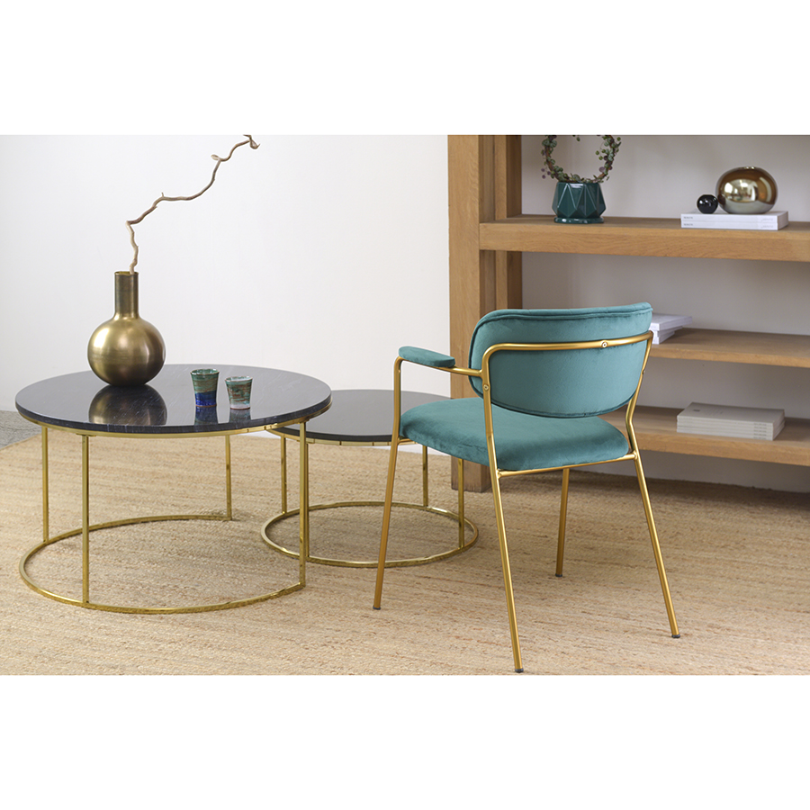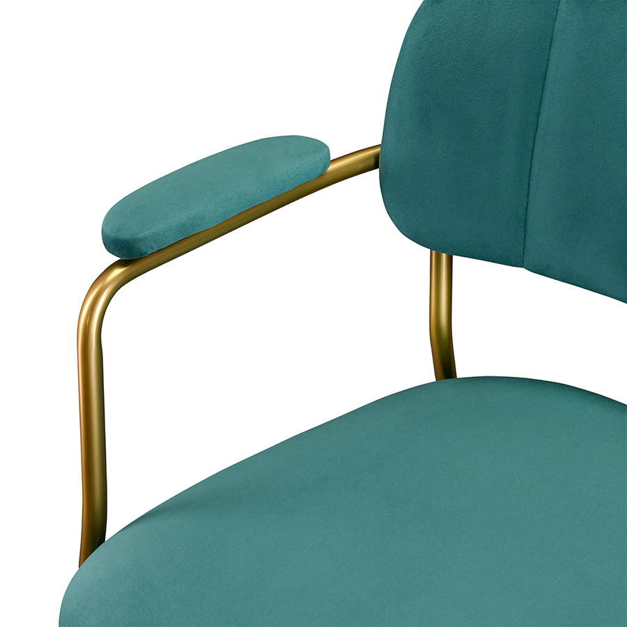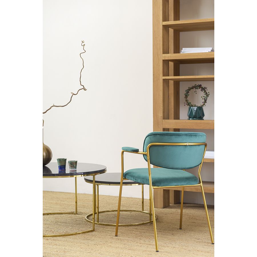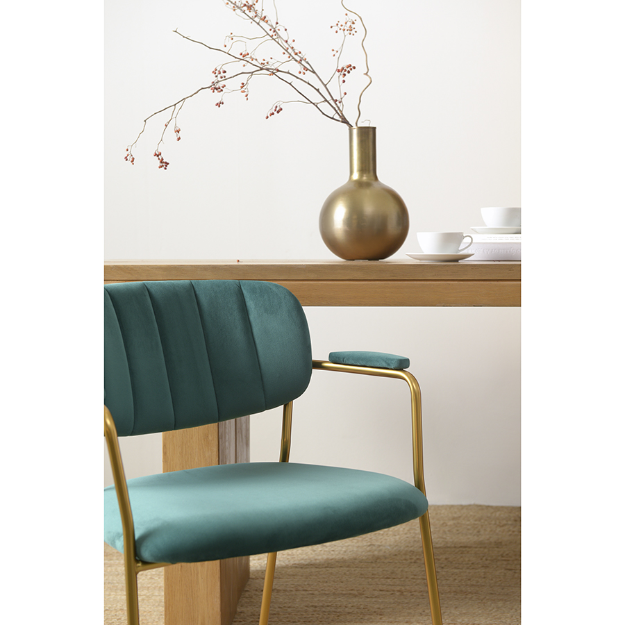 Стул Eirill с обивкой из мягкого, бархатистого велюра смотрится стильно и благородно. Материал приятный на ощупь, износостойкий и нетребовательный в уходе. Комфорт при сидении достигается за счет широкой, полукруглой спинки, глубокой посадки и высоких подлокотников с мягкими накладками. Плавные формы и декоративная строчка делают дизайн элегантным. Практичность и долговечность мебели обеспечивает прочный и надежный железный каркас. Модель органично вписывается в интерьер, оформленный в скандинавском стиле, эклектика, фьюжн, неоклассика и др.
