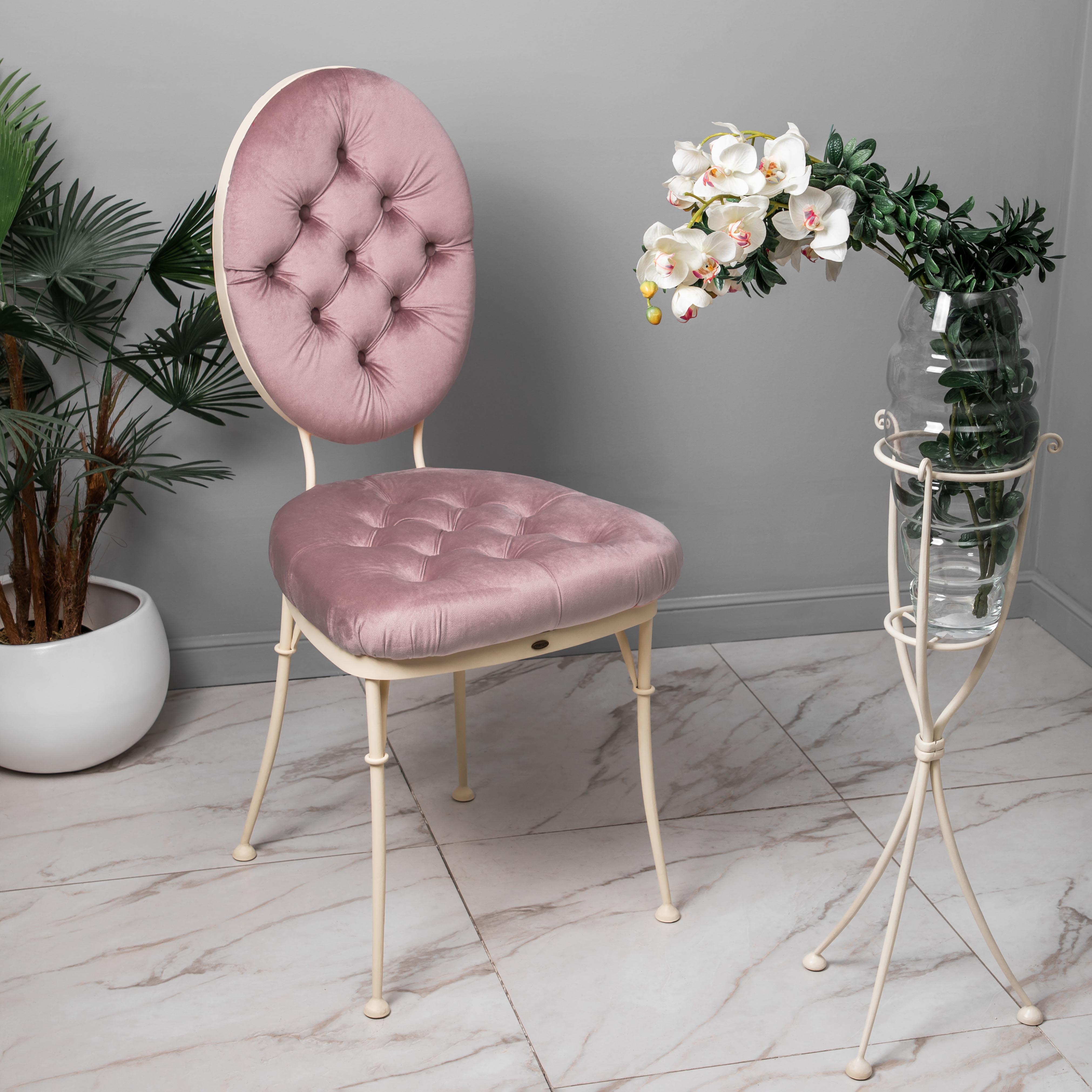Непревзойдённое качествоСтул изготовлен из кованой стали высокого качества – это прочный, долговечный и солидный материал, который в то же время выглядит легко и воздушно. Износоустойчивый велюр сказочных оттенков прослужит Вам долгие годы, радуя мягкостью и изящностью. Доверьтесь качеству мебели BOGACHO, и Ваш интерьер преобразится! ВЫСОТА ОТ ПОЛА ДО СИДЕНЬЯ: 52 см.