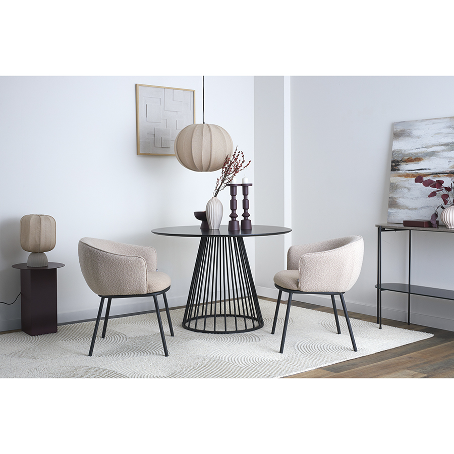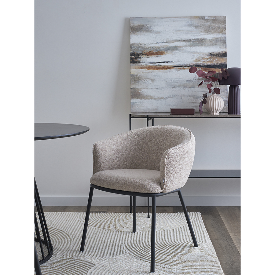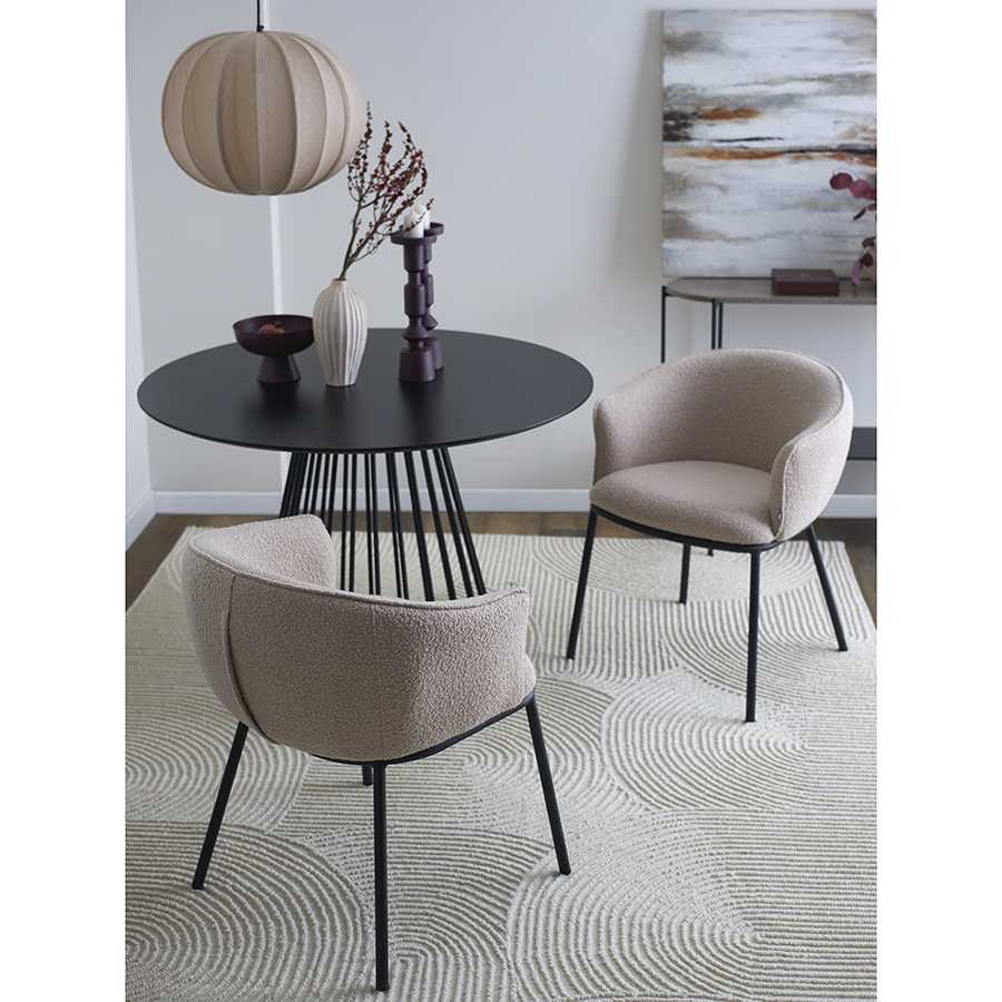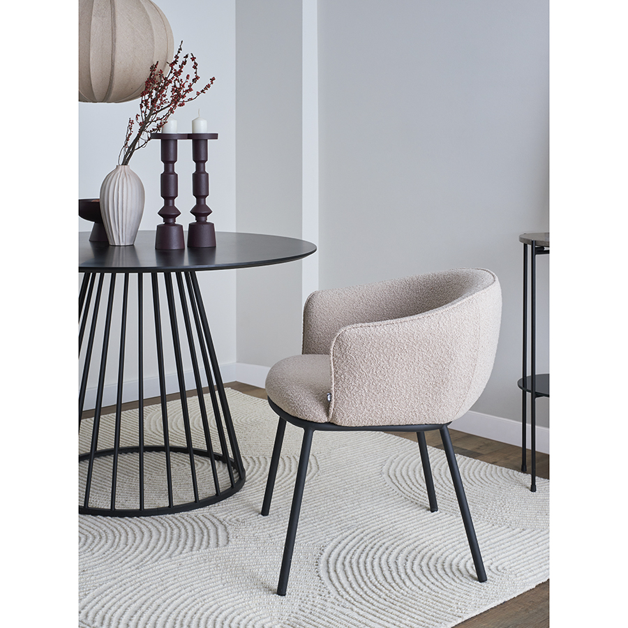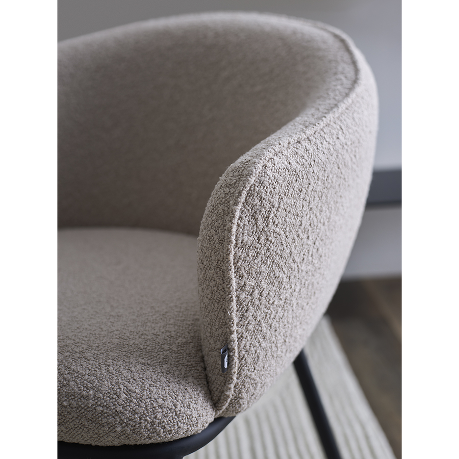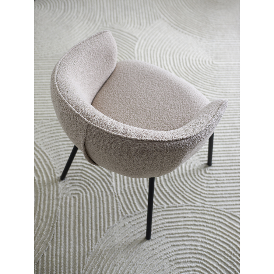 - Обивка из буклированной ткани придает стулу уютный и в то же время элегантный вид, характеризуется высокой устойчивостью к истиранию и износу.