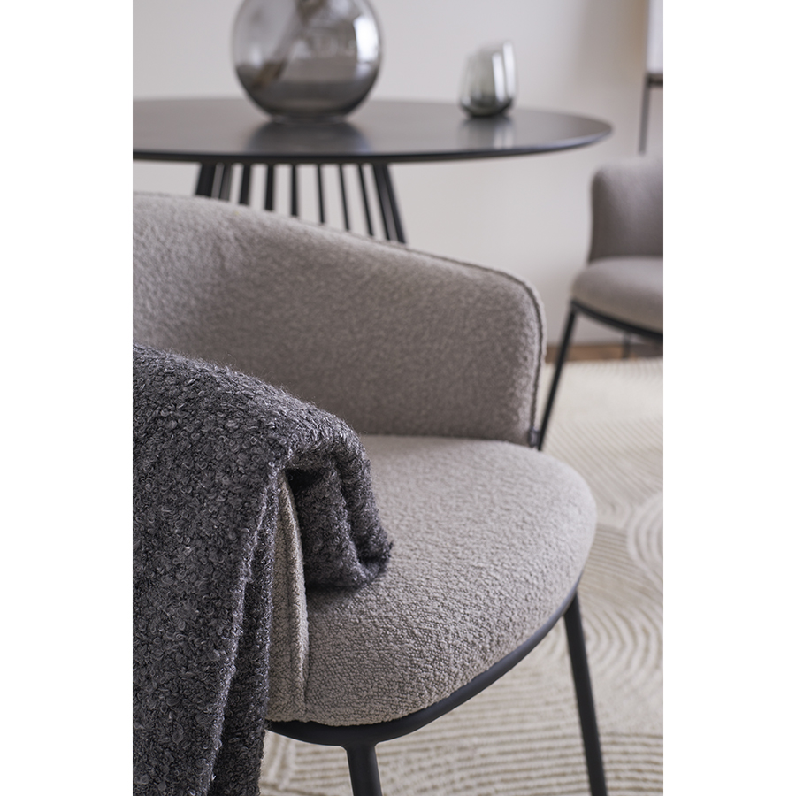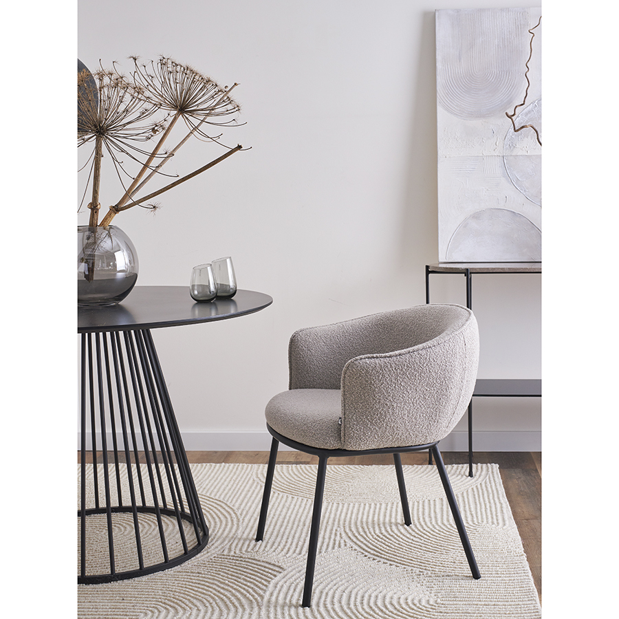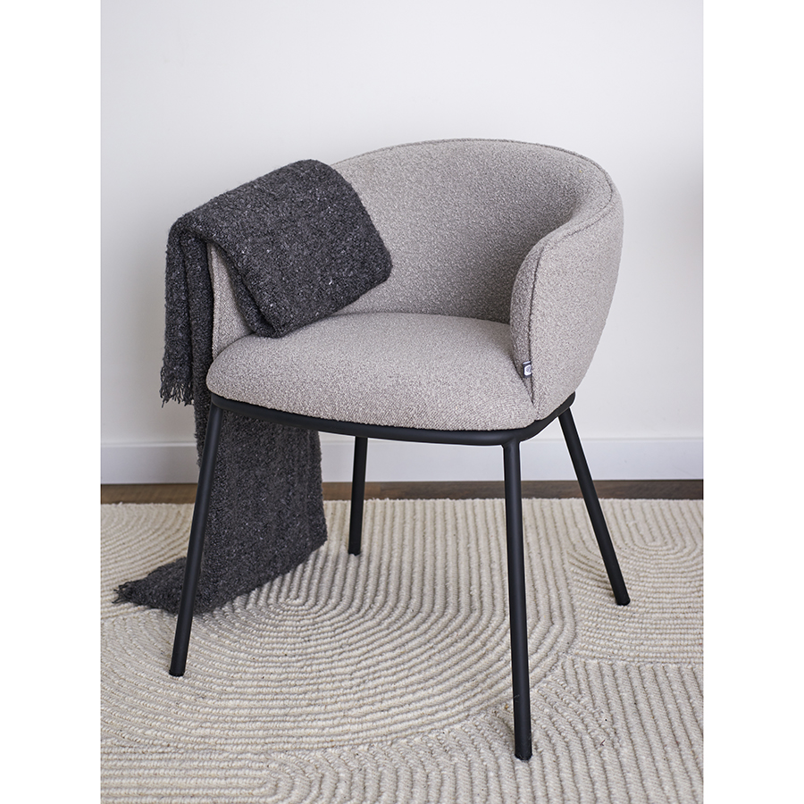 - Обивка из буклированной ткани придает стулу уютный и в то же время элегантный вид, характеризуется высокой устойчивостью к истиранию и износу.
