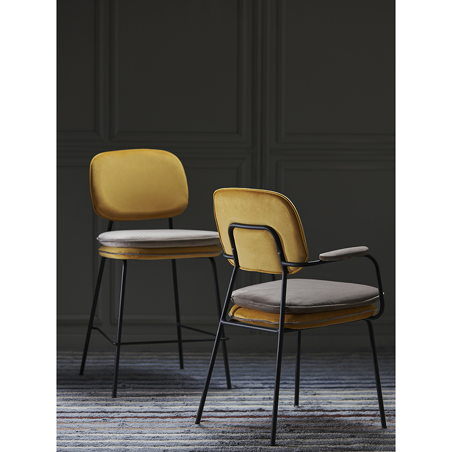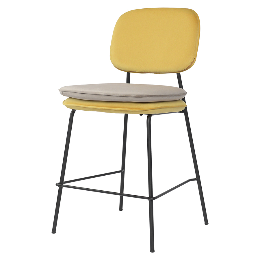 Стул полубарный Pea, велюр, желтый/бежевый