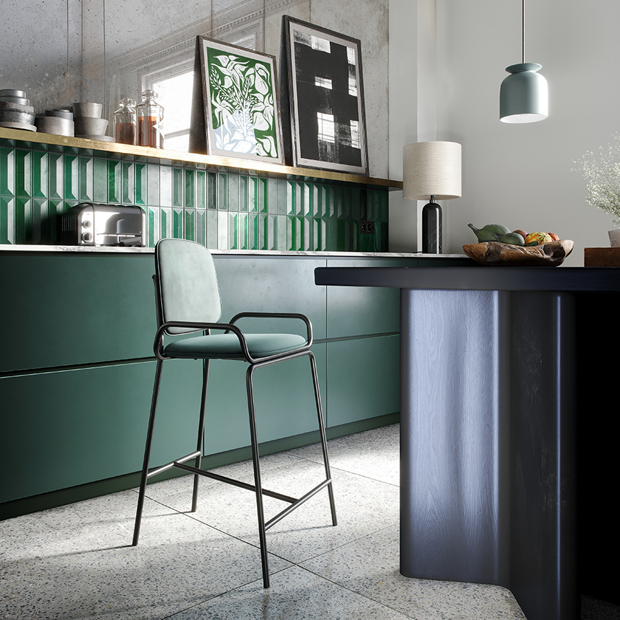 Стул полубарный Ror, 2 Frame, велюр, черный/зеленый