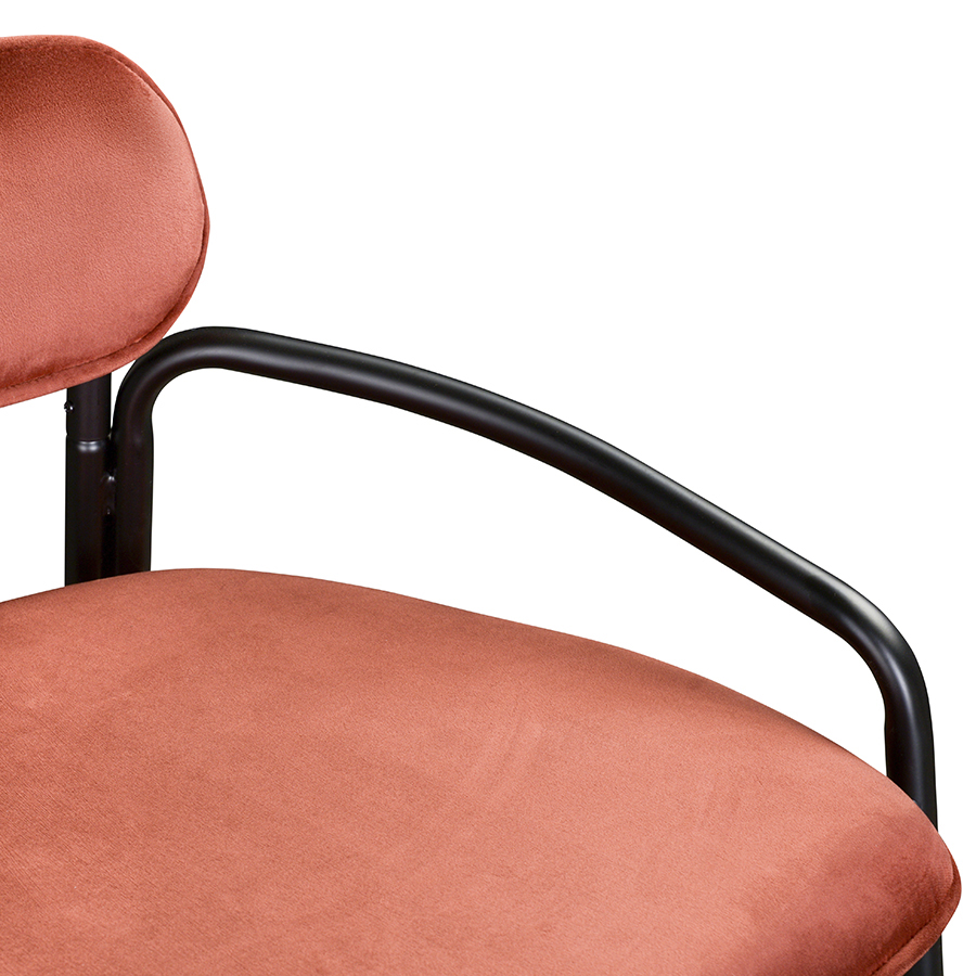 Стальное основание с порошковым покрытием делает конструкцию прочной и надежной, а мягкий велюр с бархатистой текстурой обеспечивает тактильный комфорт. Ткань обивки обладает высокими показателями износостойкости. Используемый в качестве наполнителя пенополиуретан отличается комфортной плотностью и жесткостью.