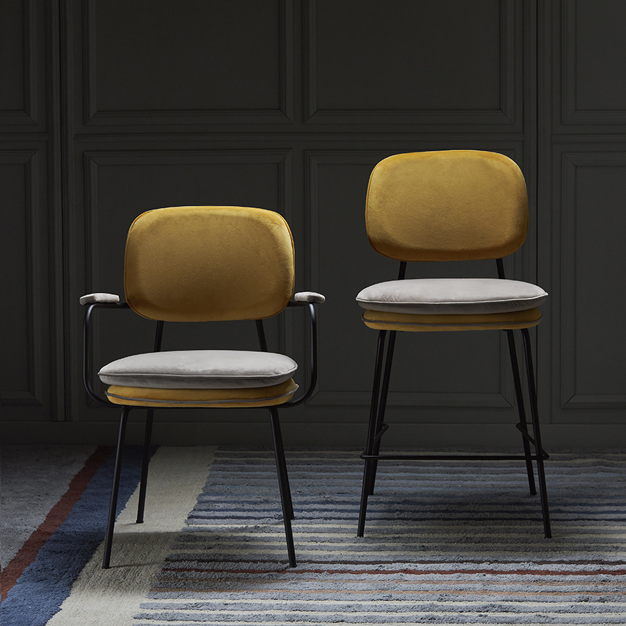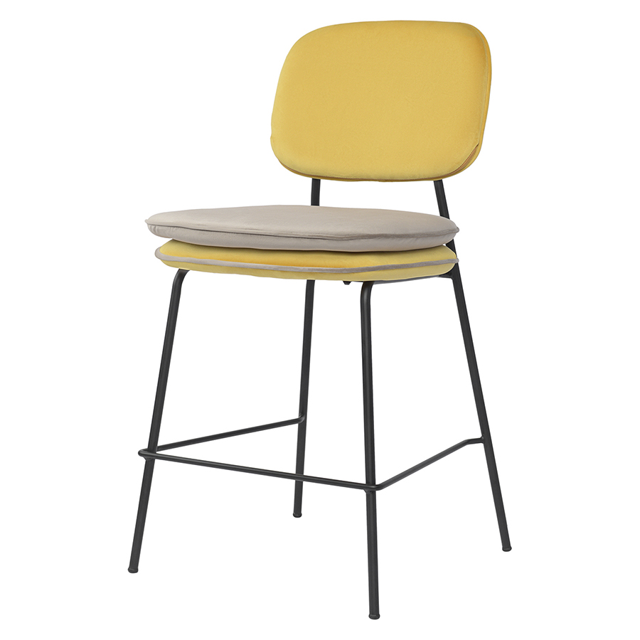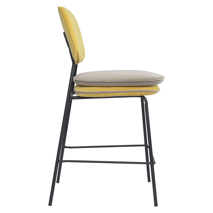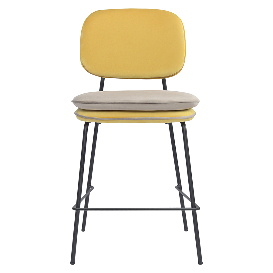 Стул полубарный с контрастным кантом Pea, велюр, желтый/бежевый