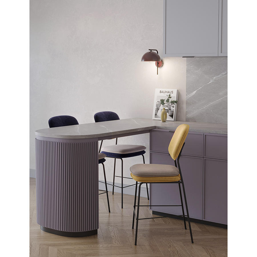 Стул полубарный Pea с контрастным кантом и мягкой обивкой из бархатистого велюра станет настоящим украшением интерьера и идеальным выбором для ценителей качественной и элегантной мебели.