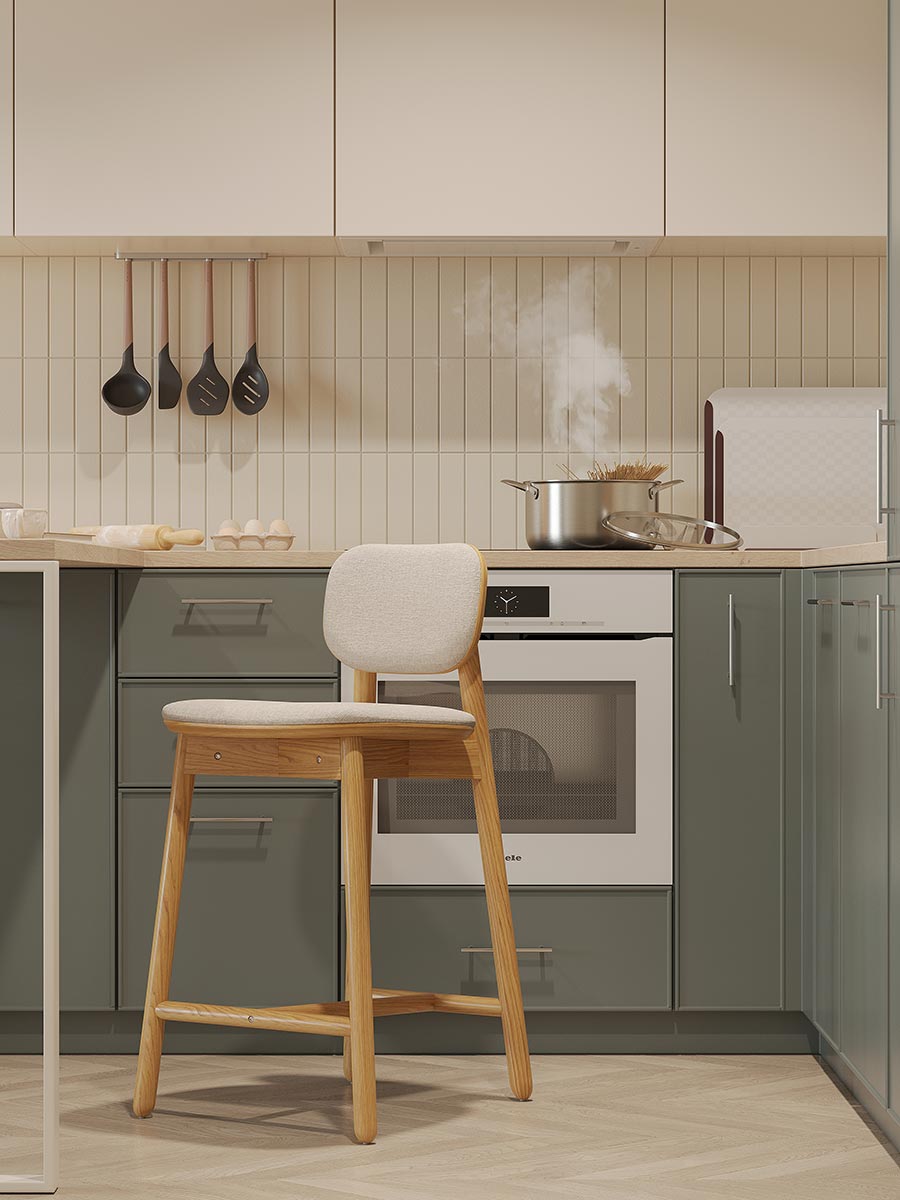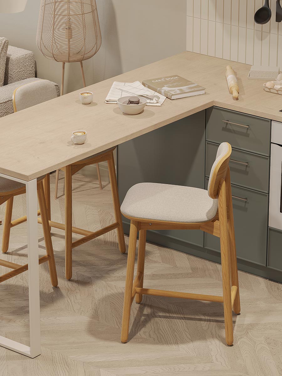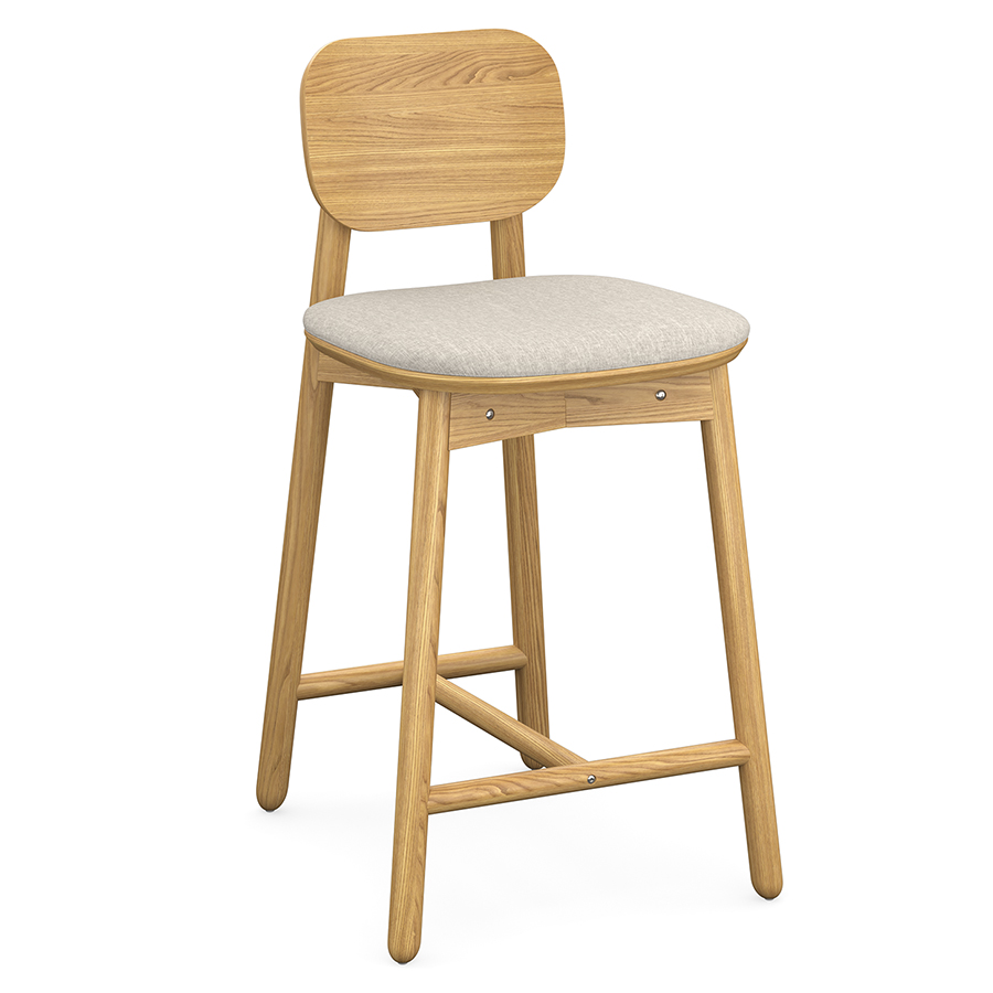 Материалы: массив ясеня, шпон ясеня, 100% пенополиуретан, 100% полиэстер. Размеры: 46х52х92 см. Высота сиденья: 64 см. Ширина сиденья: 43 см. Глубина сиденья: 41 см. Высота спинки: 30 см. Ширина спинки: 32 см. Высота подножки: 16 см. Максимальная нагрузка: 136 кг. Цвет: бежевый.