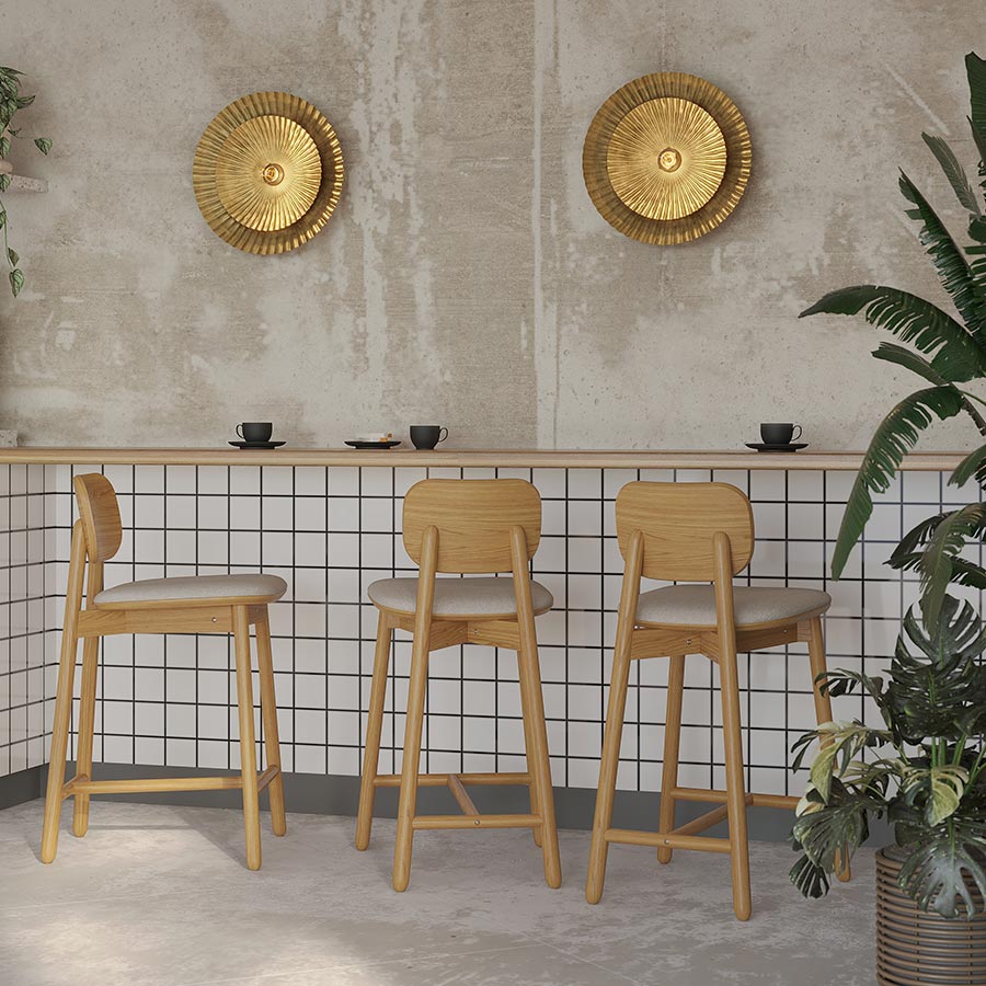 Cтул полубарный изготовлен из массива ясеня – твердой породы древесины, плотность и прочность которой не уступает характеристикам дуба. Благодаря прекрасным эксплуатационным свойствам материала готовое изделие не подвержено преждевременному износу, деформации, имеет высокие показатели практичности и экологической безопасности. Сиденье с мягкой накладкой из пенополиуретана обеспечивает комфортную посадку. Обивка из рогожки обладает износостойкостью, придает модели современный вид. Наличие специальной перекладины позволяет удобно расположить ноги. Деревянная мебель с лаконичным дизайном всегда актуальна, отлично сочетается с любыми стилевыми решениями, что является ее неоспоримым преимуществом.
