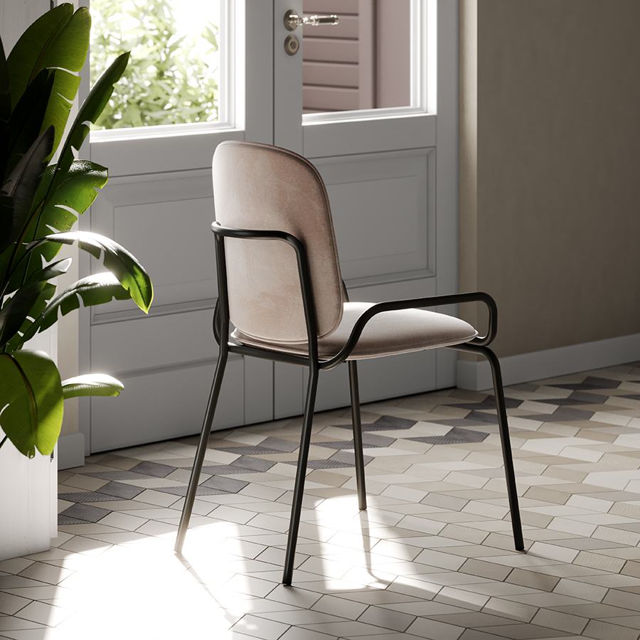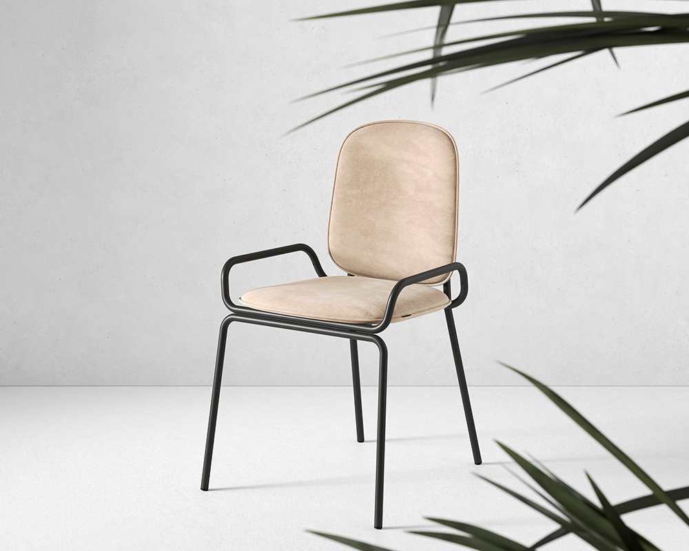 Стальной каркас с порошковым покрытием делает конструкцию прочной и надежной, а мягкий велюр с бархатистой текстурой обеспечивает тактильный комфорт. Ткань обивки обладает высокими показателями износостойкости. Используемый в качестве наполнителя пенополиуретан отличается комфортной плотностью и жесткостью.